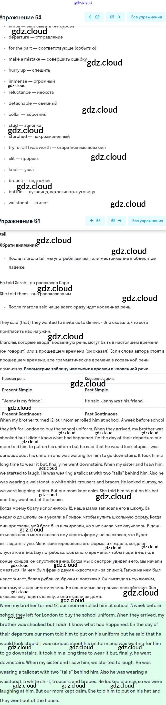 Ответ на задание 64 Учебник Английский язык за 8 (восьмой) класс Афанасьева, Михеева Углубленный уровень 2014
