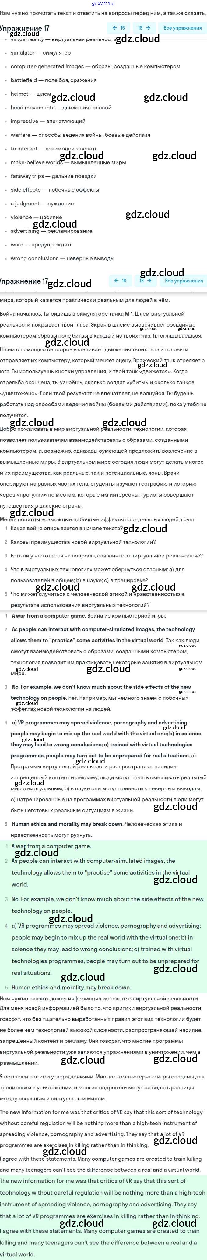 Ответ на задание 17 Учебник Английский язык за 8 (восьмой) класс Афанасьева, Михеева Углубленный уровень 2014