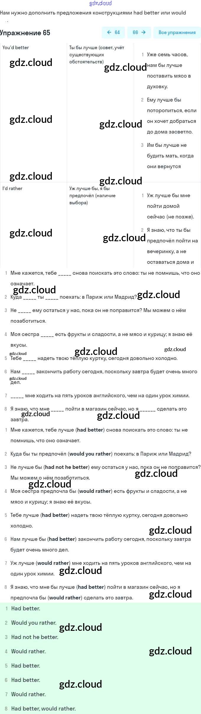 Ответ на задание 65 Учебник Английский язык за 8 (восьмой) класс Афанасьева, Михеева Углубленный уровень 2014