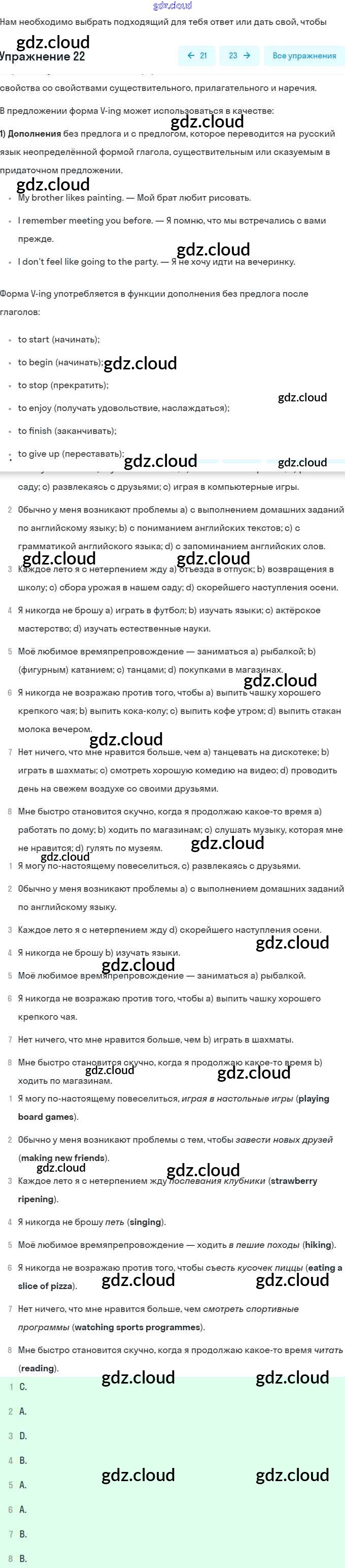 Ответ на задание 22 Учебник Английский язык за 8 (восьмой) класс Афанасьева, Михеева Углубленный уровень 2014
