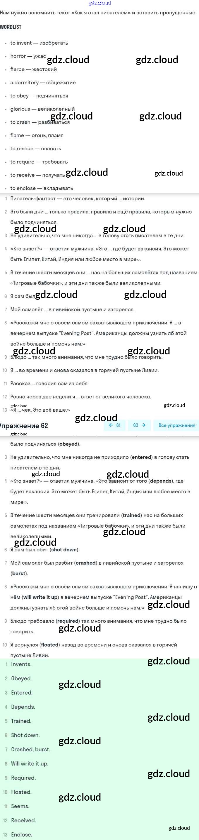 Ответ на задание 62 Учебник Английский язык за 8 (восьмой) класс Афанасьева, Михеева Углубленный уровень 2014