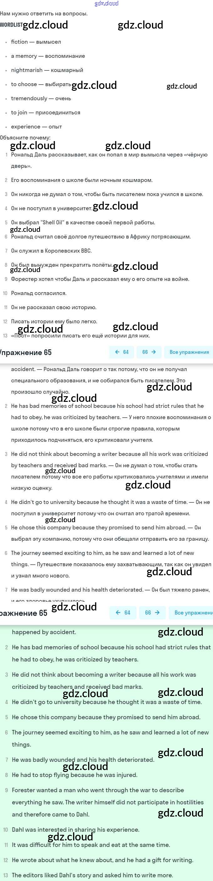 Ответ на задание 65 Учебник Английский язык за 8 (восьмой) класс Афанасьева, Михеева Углубленный уровень 2014
