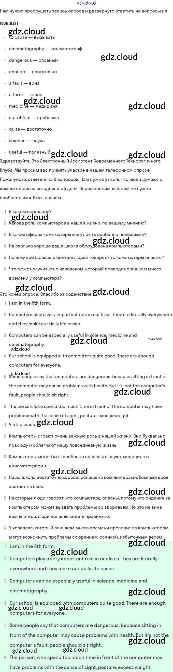 Ответ на задание 8 Учебник Английский язык за 8 (восьмой) класс Афанасьева, Михеева Углубленный уровень 2014