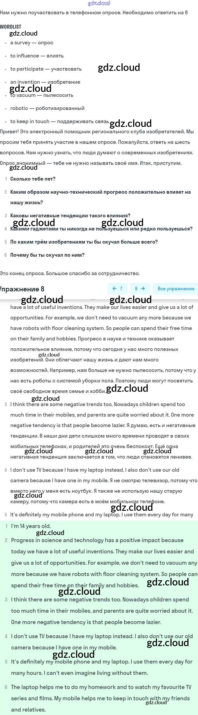 Ответ на задание 8 Учебник Английский язык за 8 (восьмой) класс Афанасьева, Михеева Углубленный уровень 2014
