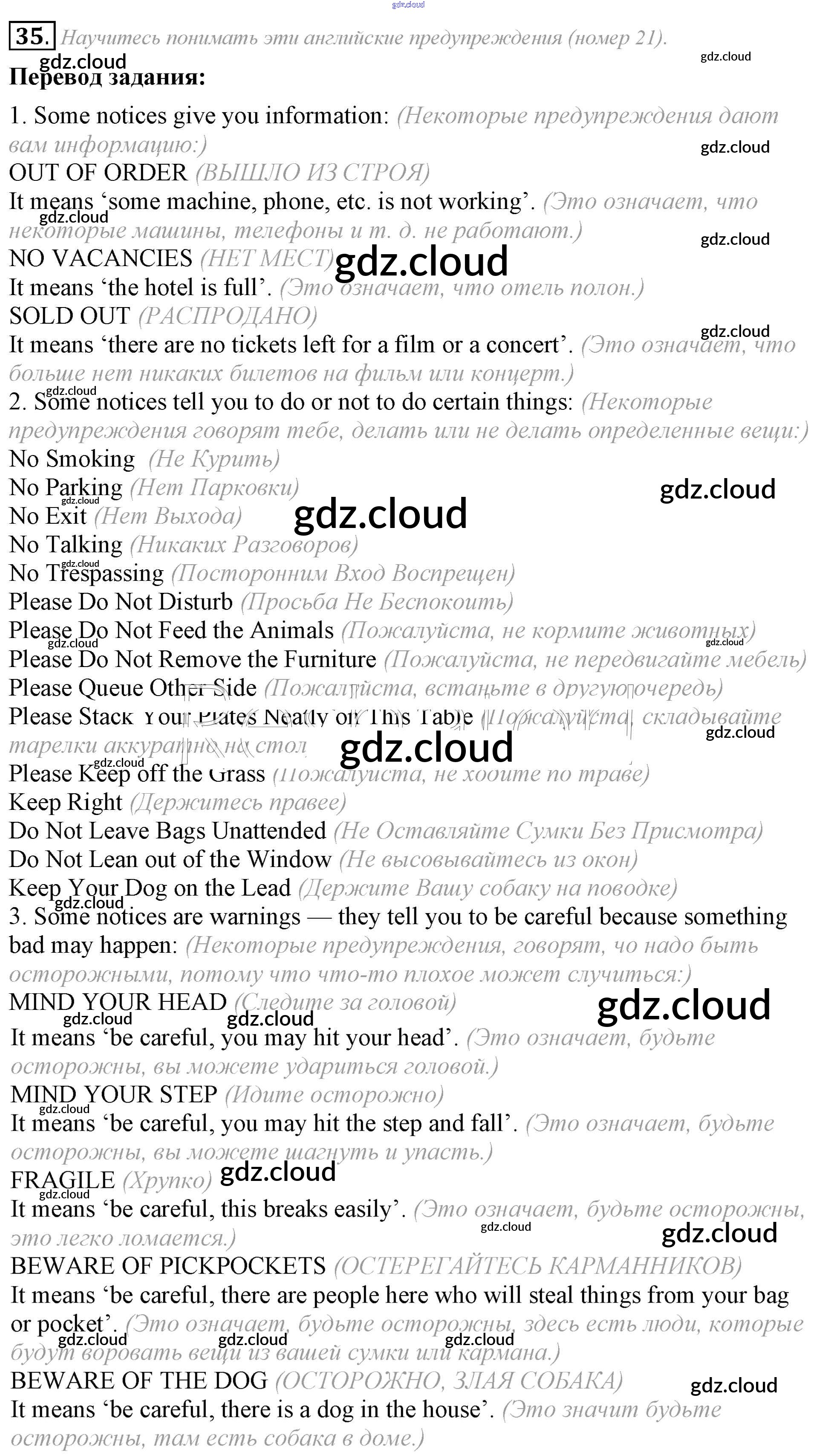 Ответ на задание 35 Учебник Английский язык за 8 (восьмой) класс Афанасьева, Михеева Углубленный уровень 2014 ФГОС онлайн и без номера телефона.