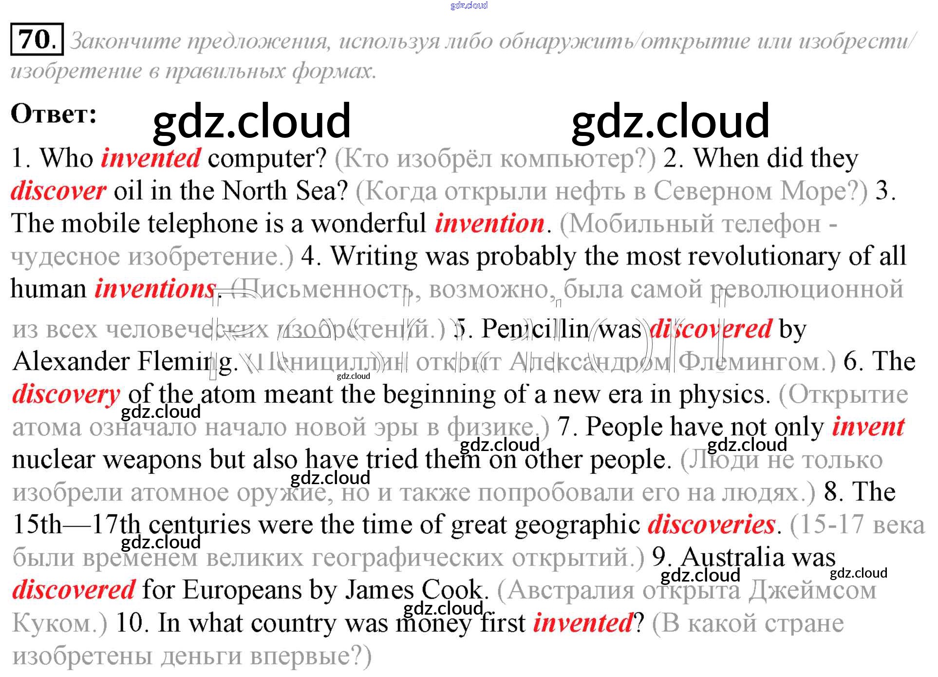 Ответ на задание 70 Учебник Английский язык за 8 (восьмой) класс Афанасьева, Михеева Углубленный уровень 2014 ФГОС онлайн и без номера телефона.