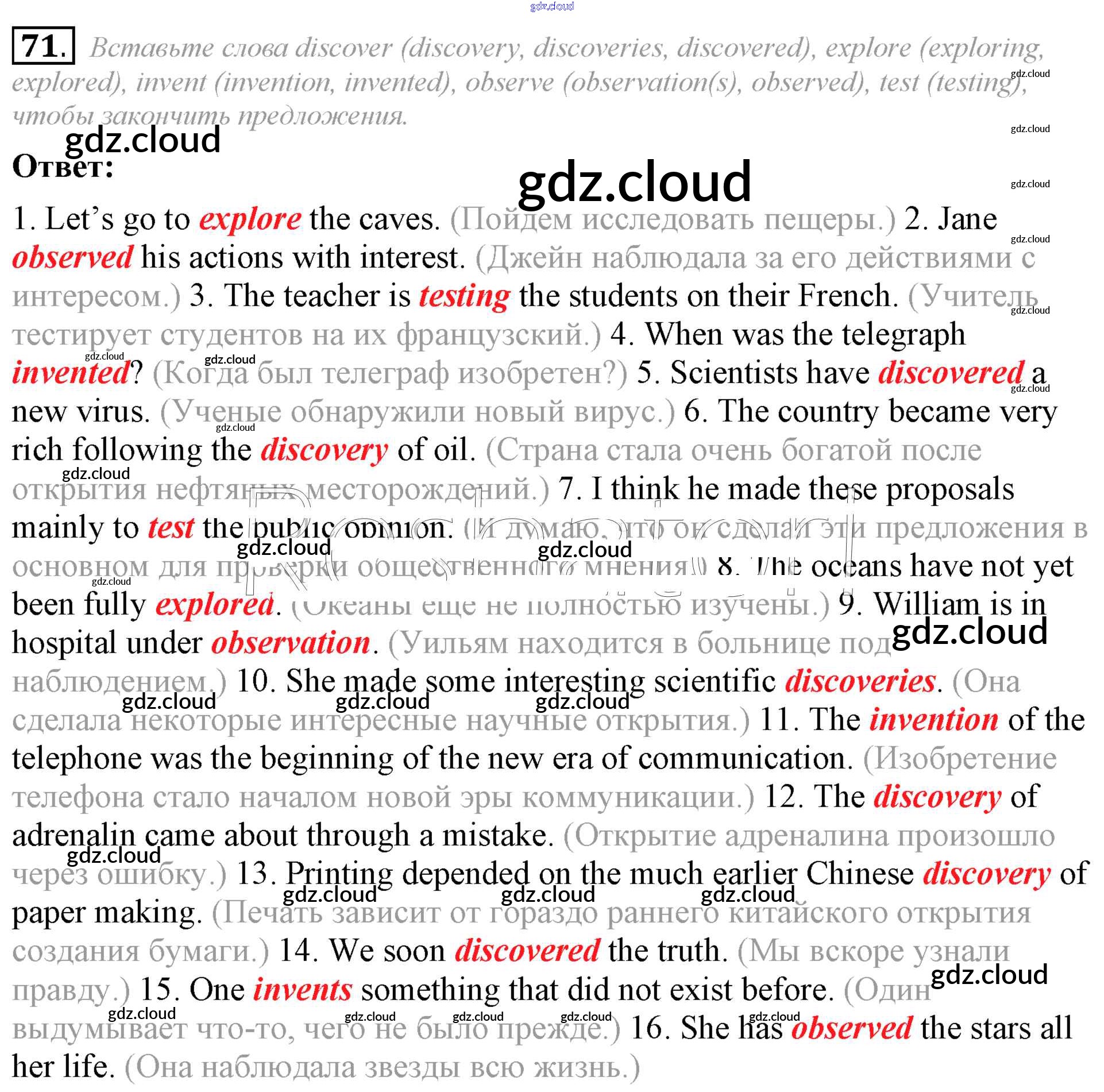 Ответ на задание 71 Учебник Английский язык за 8 (восьмой) класс Афанасьева, Михеева Углубленный уровень 2014 ФГОС онлайн и без номера телефона.