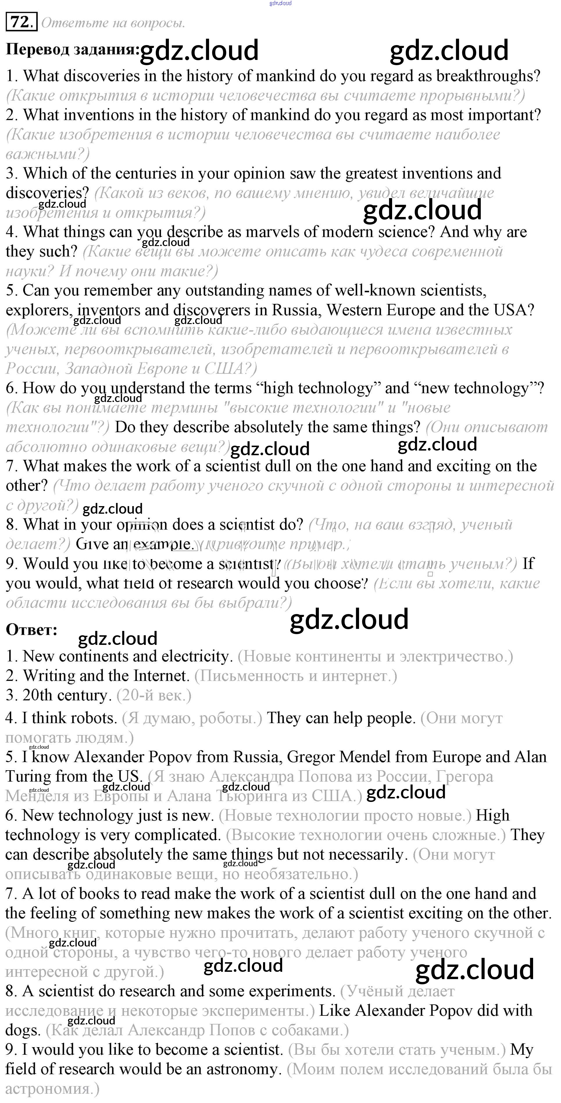 Ответ на задание 72 Учебник Английский язык за 8 (восьмой) класс Афанасьева, Михеева Углубленный уровень 2014 ФГОС онлайн и без номера телефона.
