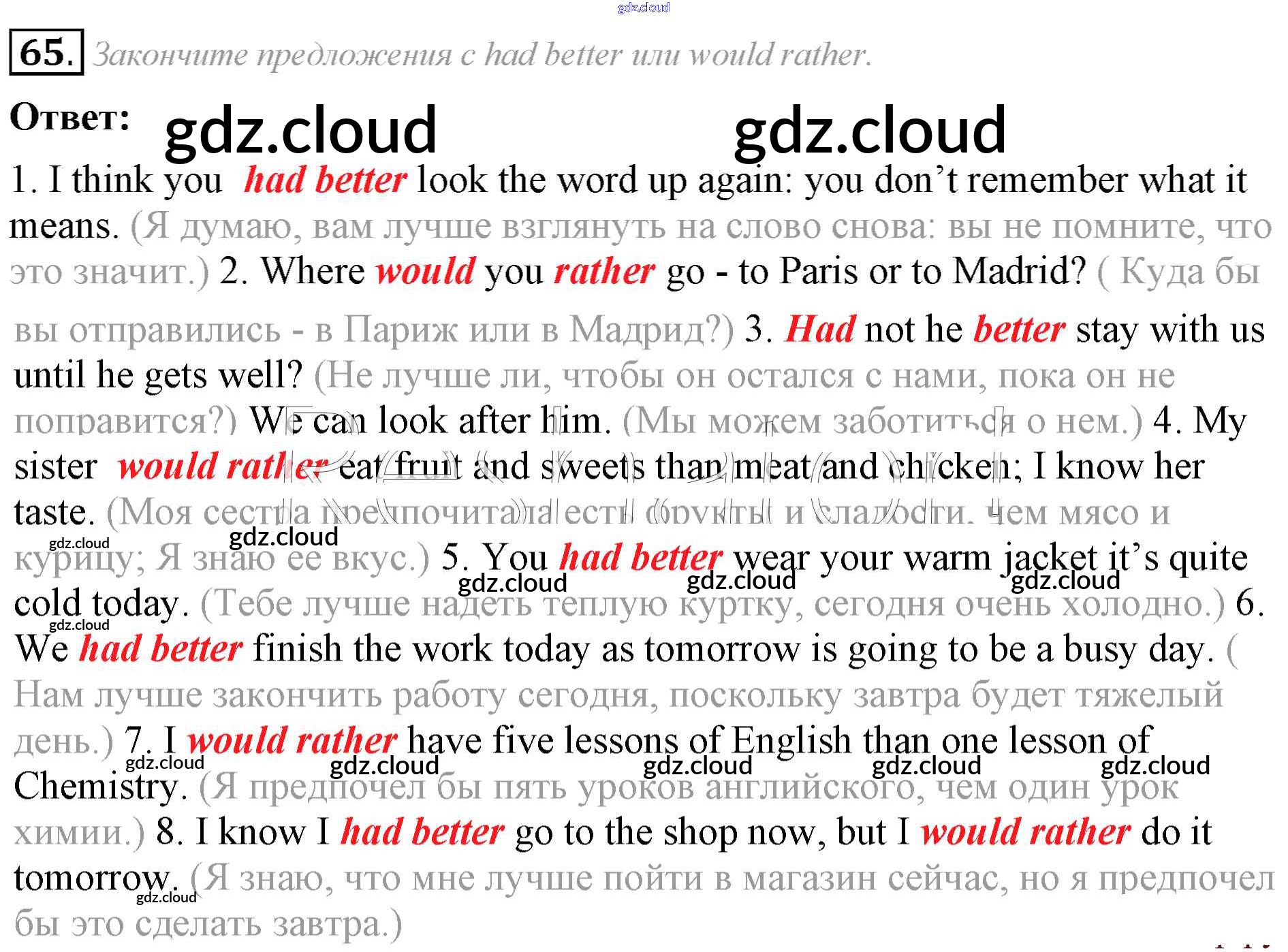 Ответ на задание 65 Учебник Английский язык за 8 (восьмой) класс Афанасьева, Михеева Углубленный уровень 2014 ФГОС онлайн и без номера телефона.