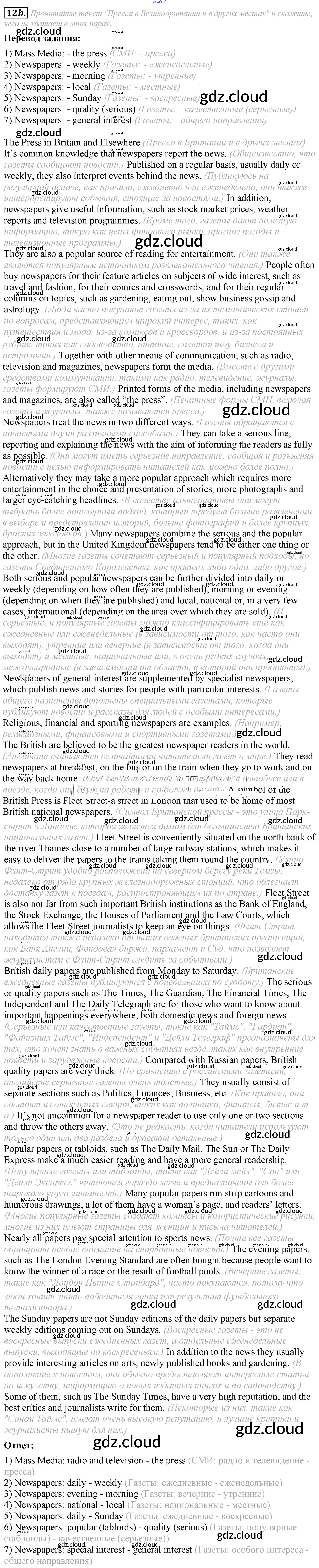 Ответ на задание 12b Учебник Английский язык за 8 (восьмой) класс Афанасьева, Михеева Углубленный уровень 2014 ФГОС онлайн и без номера телефона.