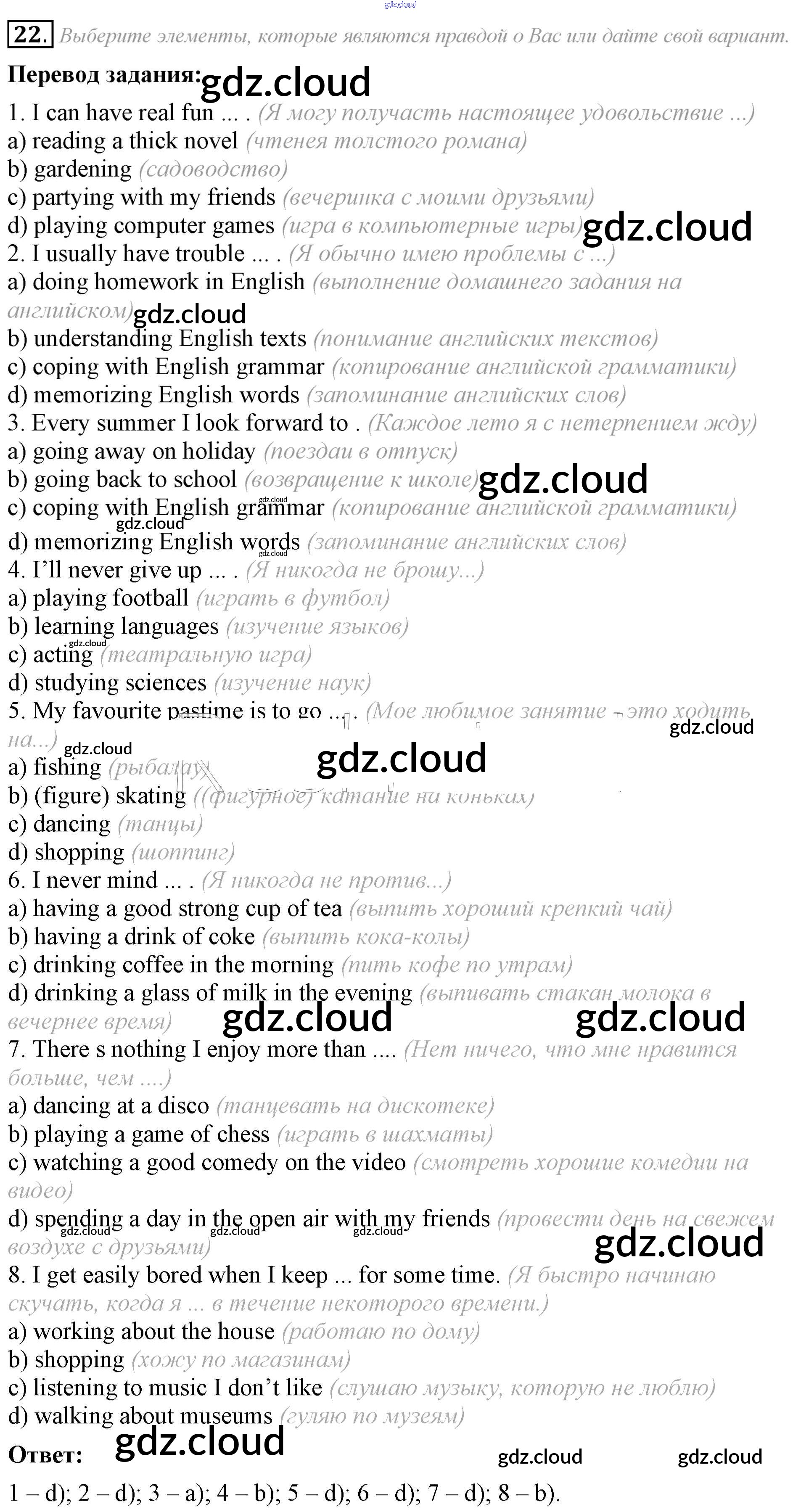 Ответ на задание 22 Учебник Английский язык за 8 (восьмой) класс Афанасьева, Михеева Углубленный уровень 2014 ФГОС онлайн и без номера телефона.
