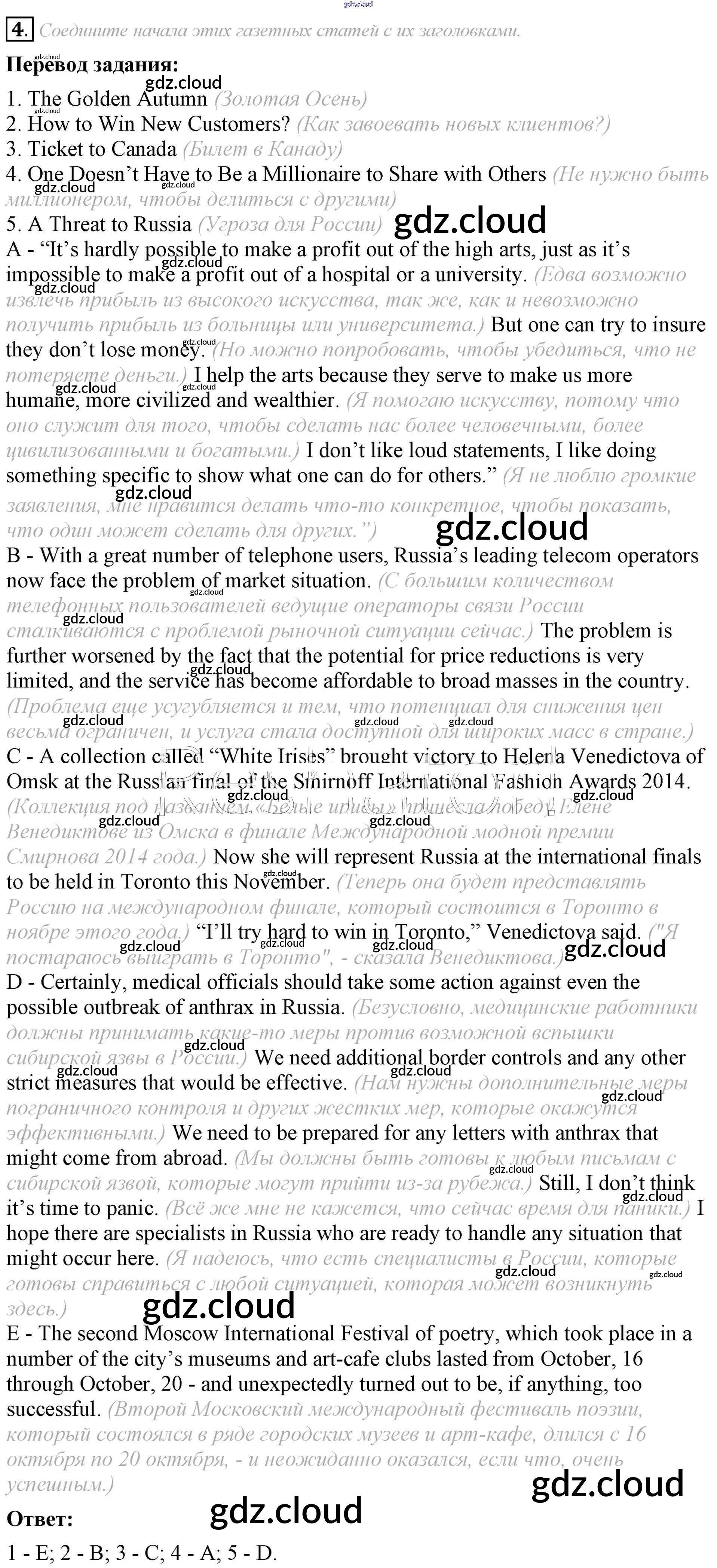 Ответ на задание 4 Учебник Английский язык за 8 (восьмой) класс Афанасьева, Михеева Углубленный уровень 2014 ФГОС онлайн и без номера телефона.