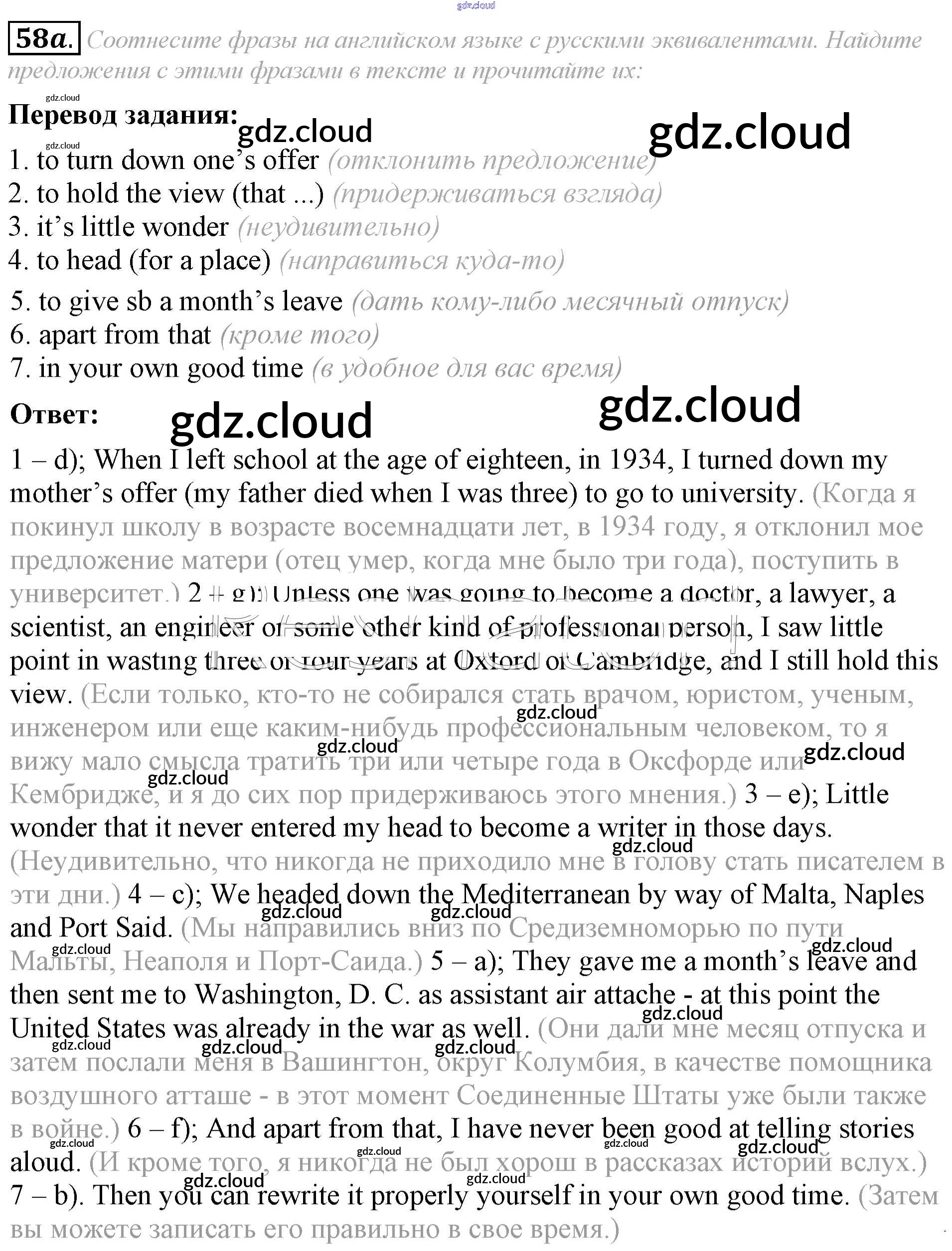Ответ на задание 58a Учебник Английский язык за 8 (восьмой) класс Афанасьева, Михеева Углубленный уровень 2014 ФГОС онлайн и без номера телефона.