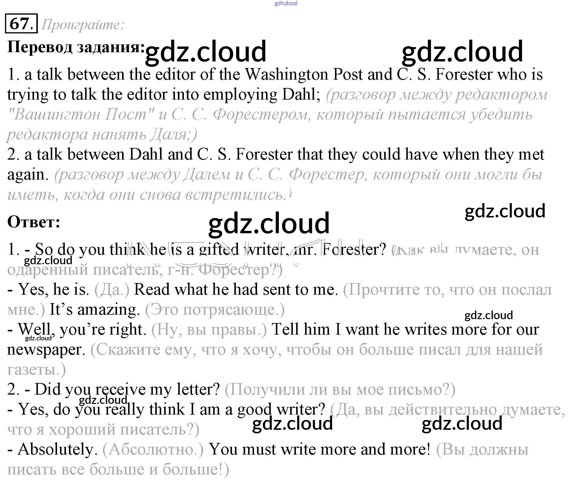 Ответ на задание 67 Учебник Английский язык за 8 (восьмой) класс Афанасьева, Михеева Углубленный уровень 2014 ФГОС онлайн и без номера телефона.