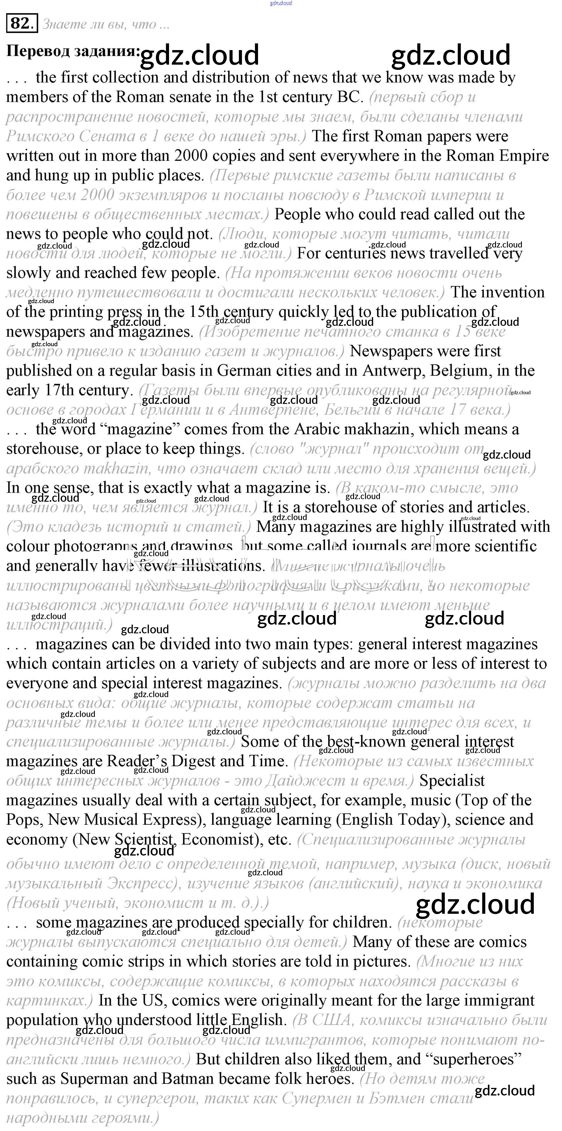 Ответ на задание 82 Учебник Английский язык за 8 (восьмой) класс Афанасьева, Михеева Углубленный уровень 2014 ФГОС онлайн и без номера телефона.