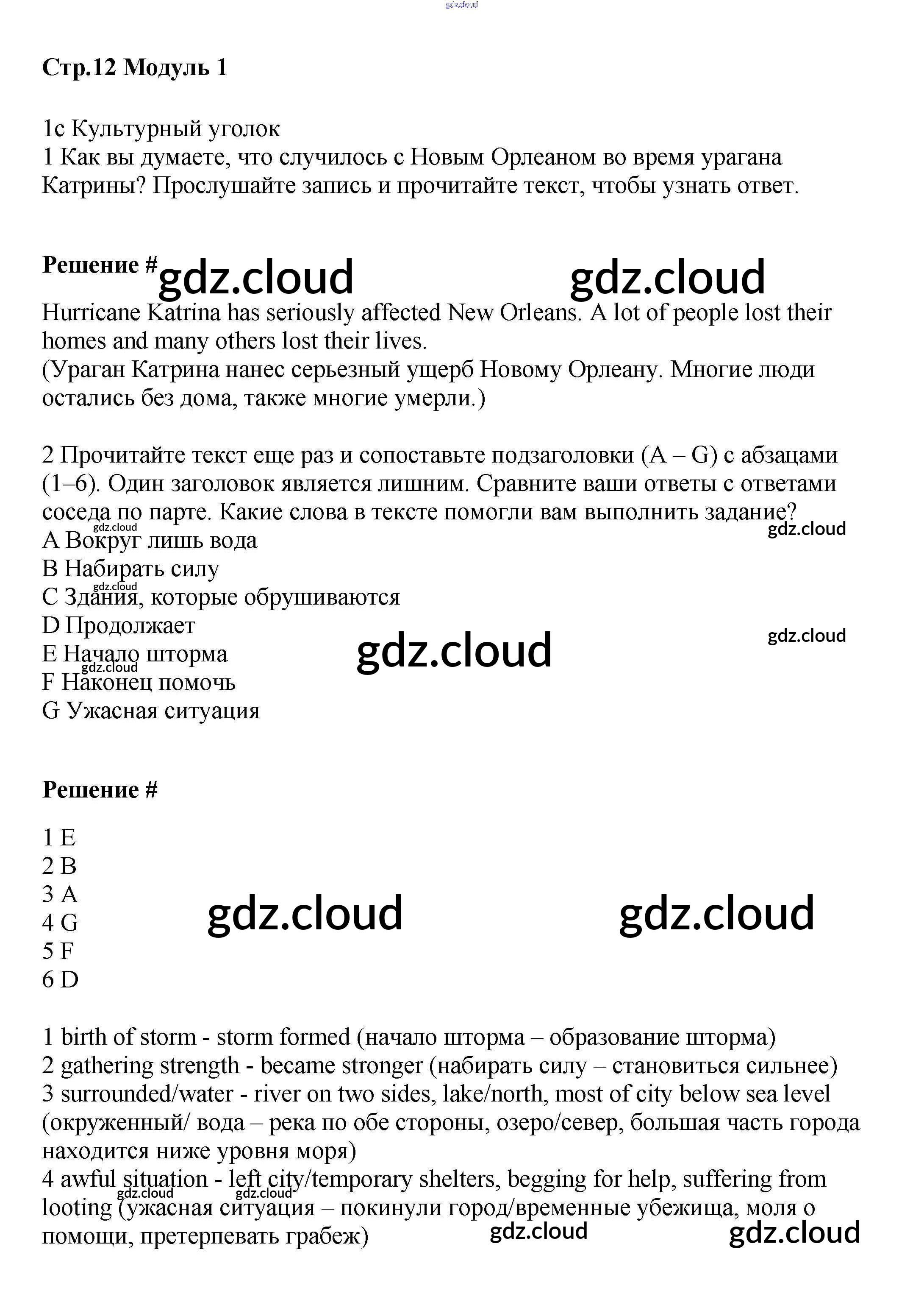 Ответ на задание стр.12 Учебник Английский язык  за 8 (восьмой) класс Баранова, Дули, Эванс, Копылова, Мильруд Starlight Углубленный уровень 2016