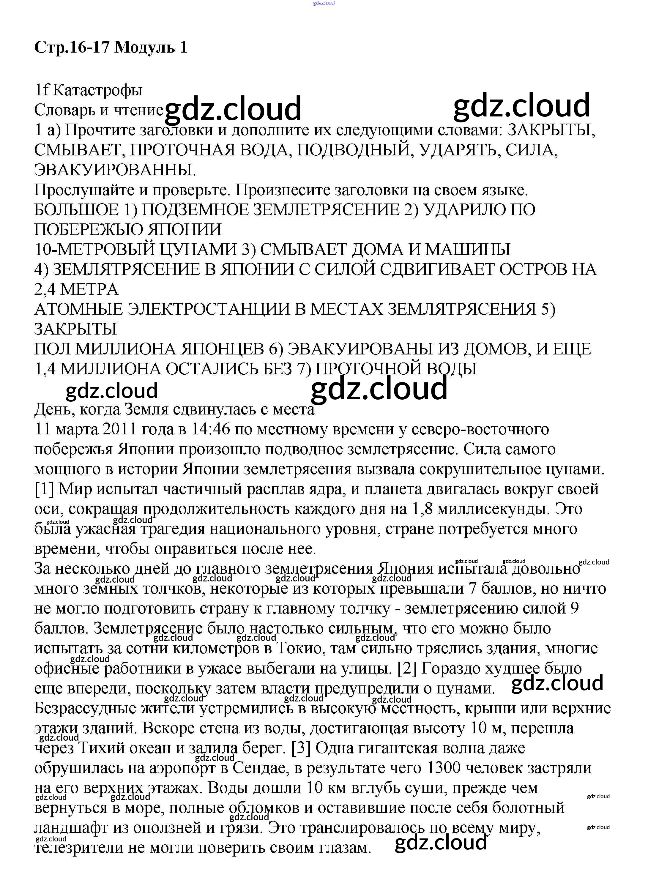 Ответ на задание стр.16-17 Учебник Английский язык  за 8 (восьмой) класс Баранова, Дули, Эванс, Копылова, Мильруд Starlight Углубленный уровень 2016