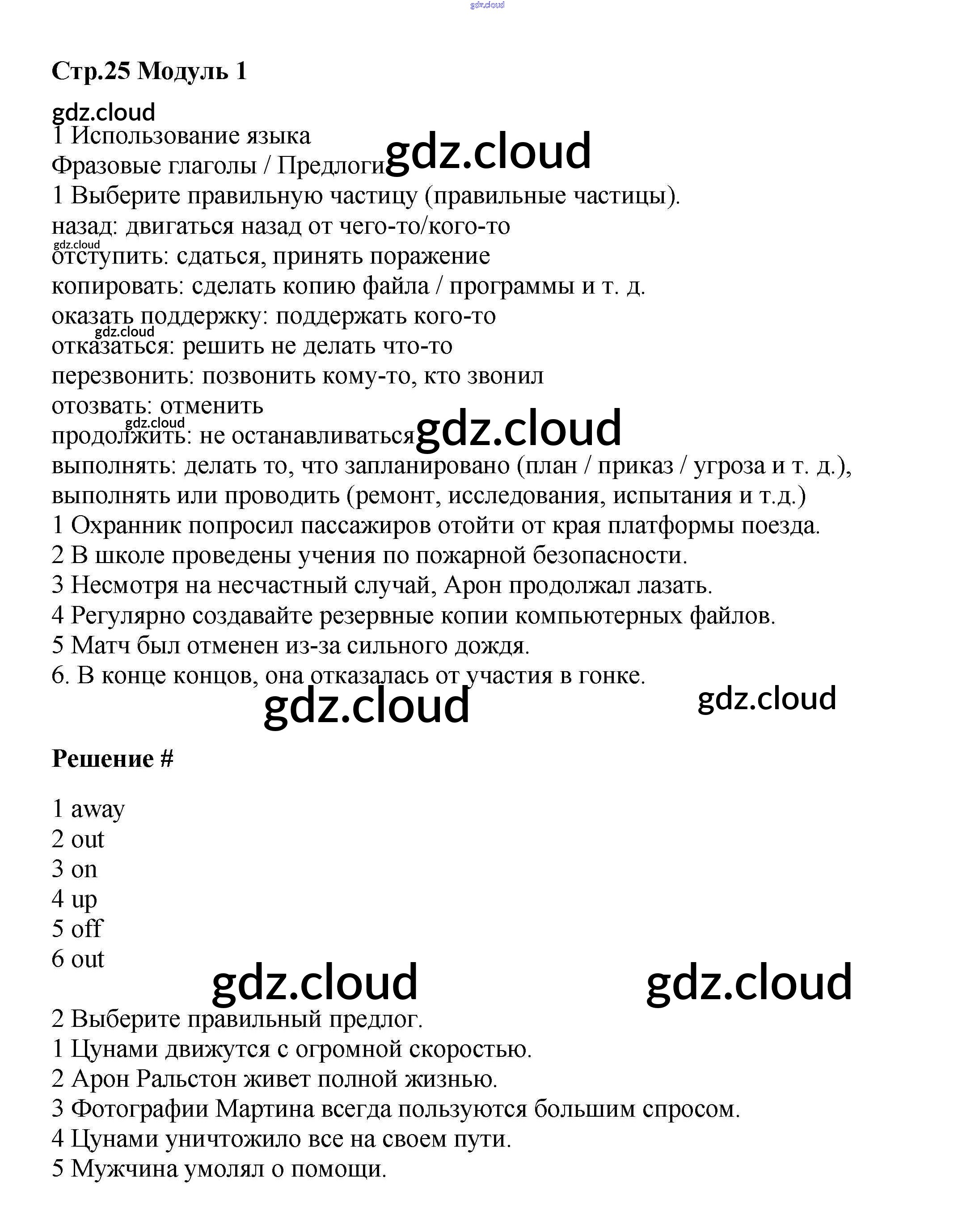 Ответ на задание стр.25 Учебник Английский язык  за 8 (восьмой) класс Баранова, Дули, Эванс, Копылова, Мильруд Starlight Углубленный уровень 2016