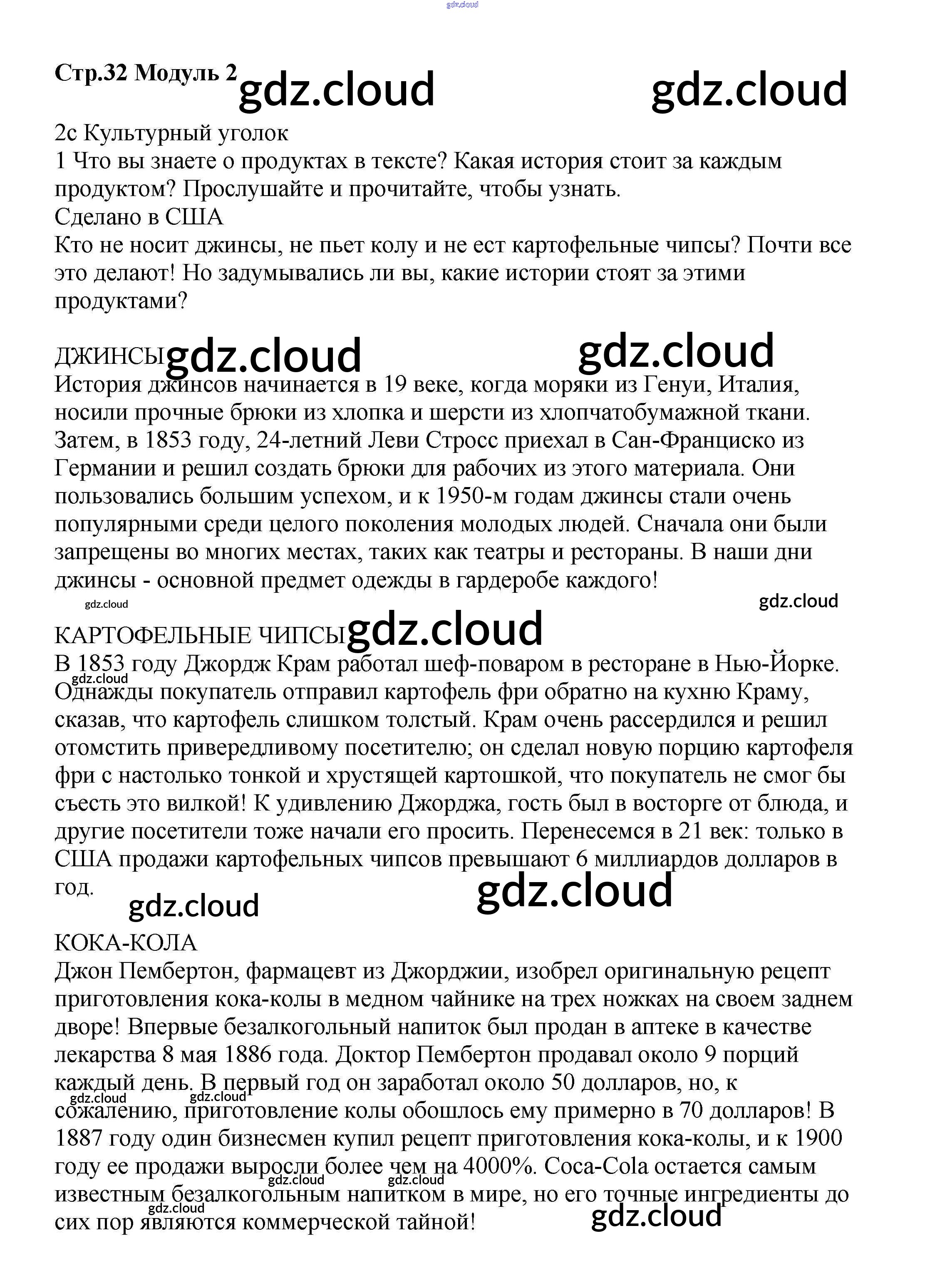 Ответ на задание стр.32 Учебник Английский язык  за 8 (восьмой) класс Баранова, Дули, Эванс, Копылова, Мильруд Starlight Углубленный уровень 2016