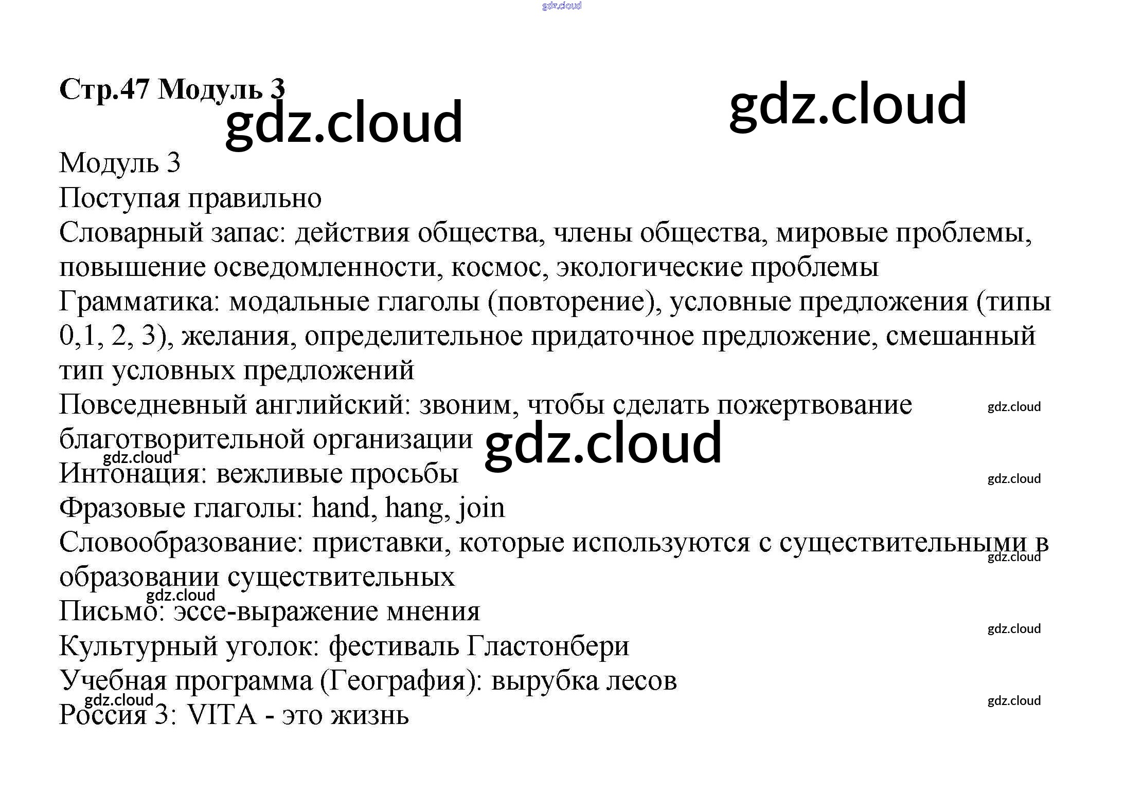 Ответ на задание стр.47 Учебник Английский язык  за 8 (восьмой) класс Баранова, Дули, Эванс, Копылова, Мильруд Starlight Углубленный уровень 2016