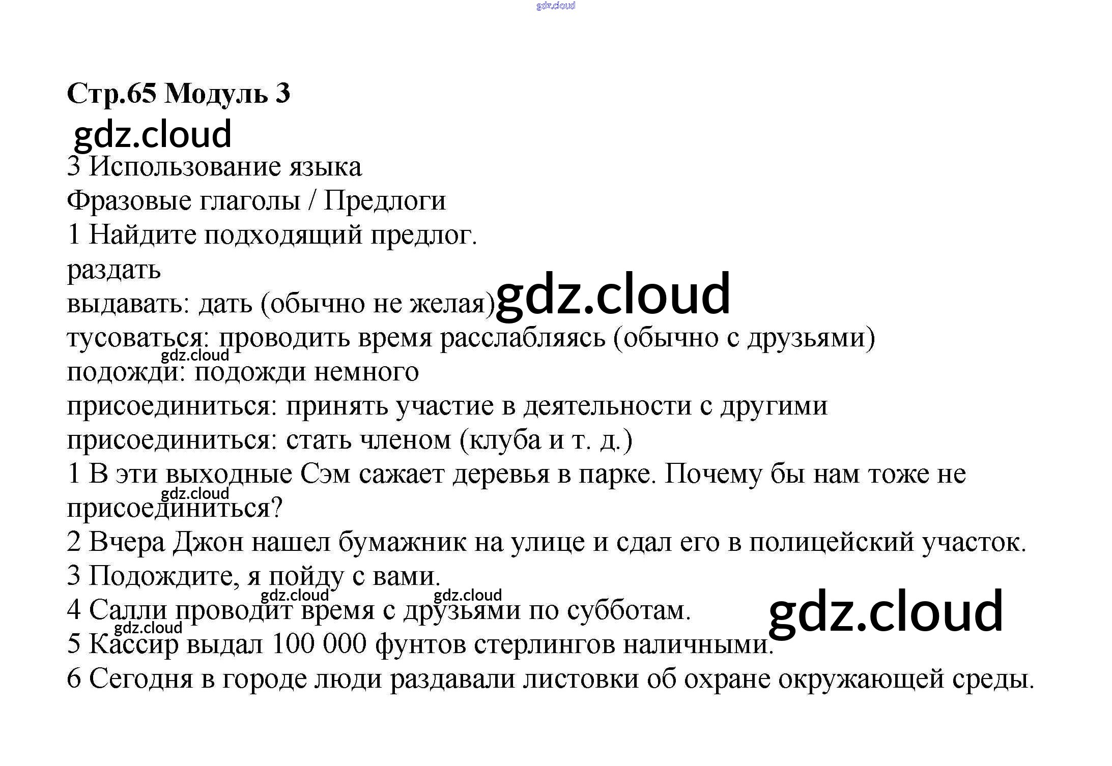 Ответ на задание стр.65 Учебник Английский язык  за 8 (восьмой) класс Баранова, Дули, Эванс, Копылова, Мильруд Starlight Углубленный уровень 2016
