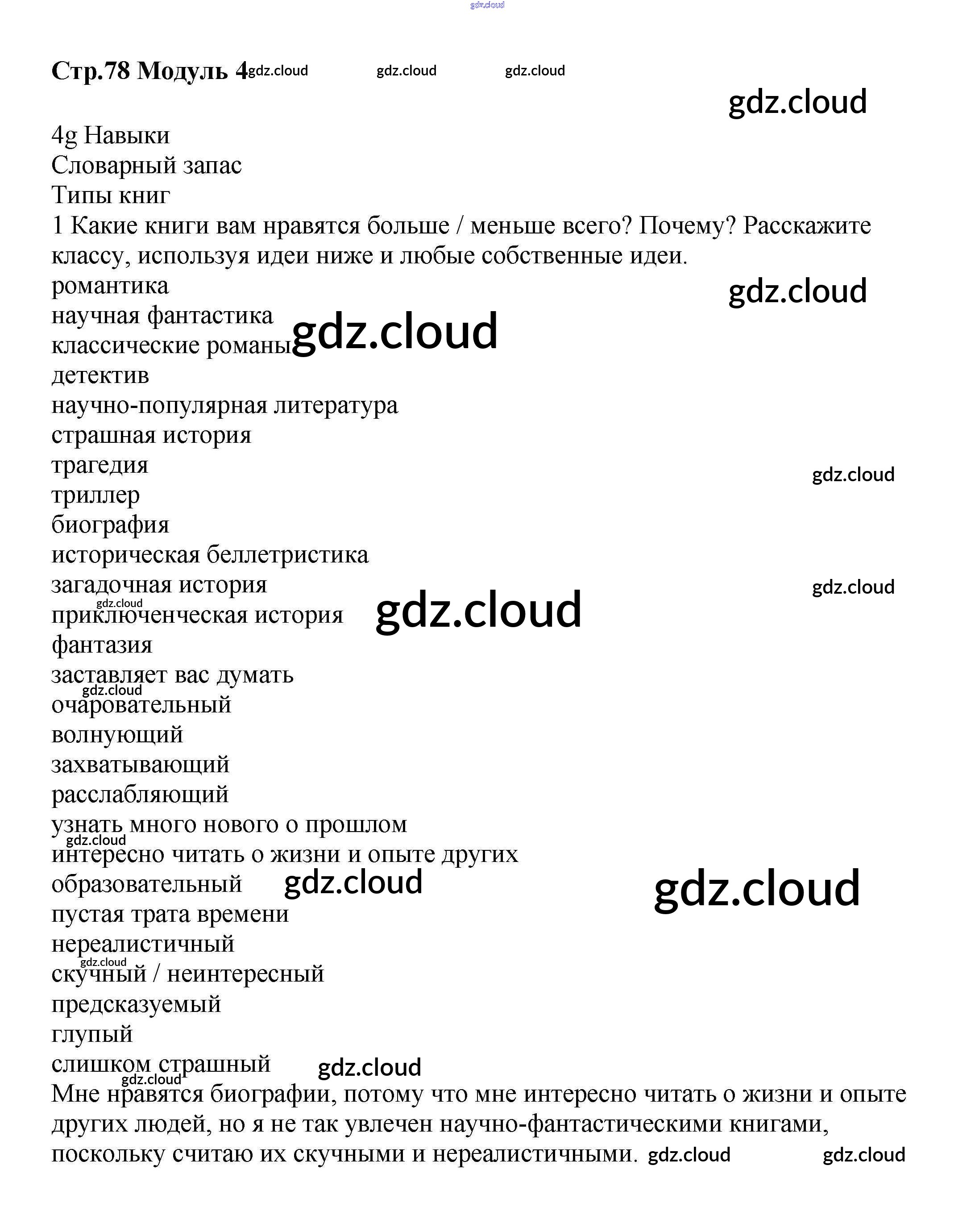 Ответ на задание стр.78 Учебник Английский язык  за 8 (восьмой) класс Баранова, Дули, Эванс, Копылова, Мильруд Starlight Углубленный уровень 2016