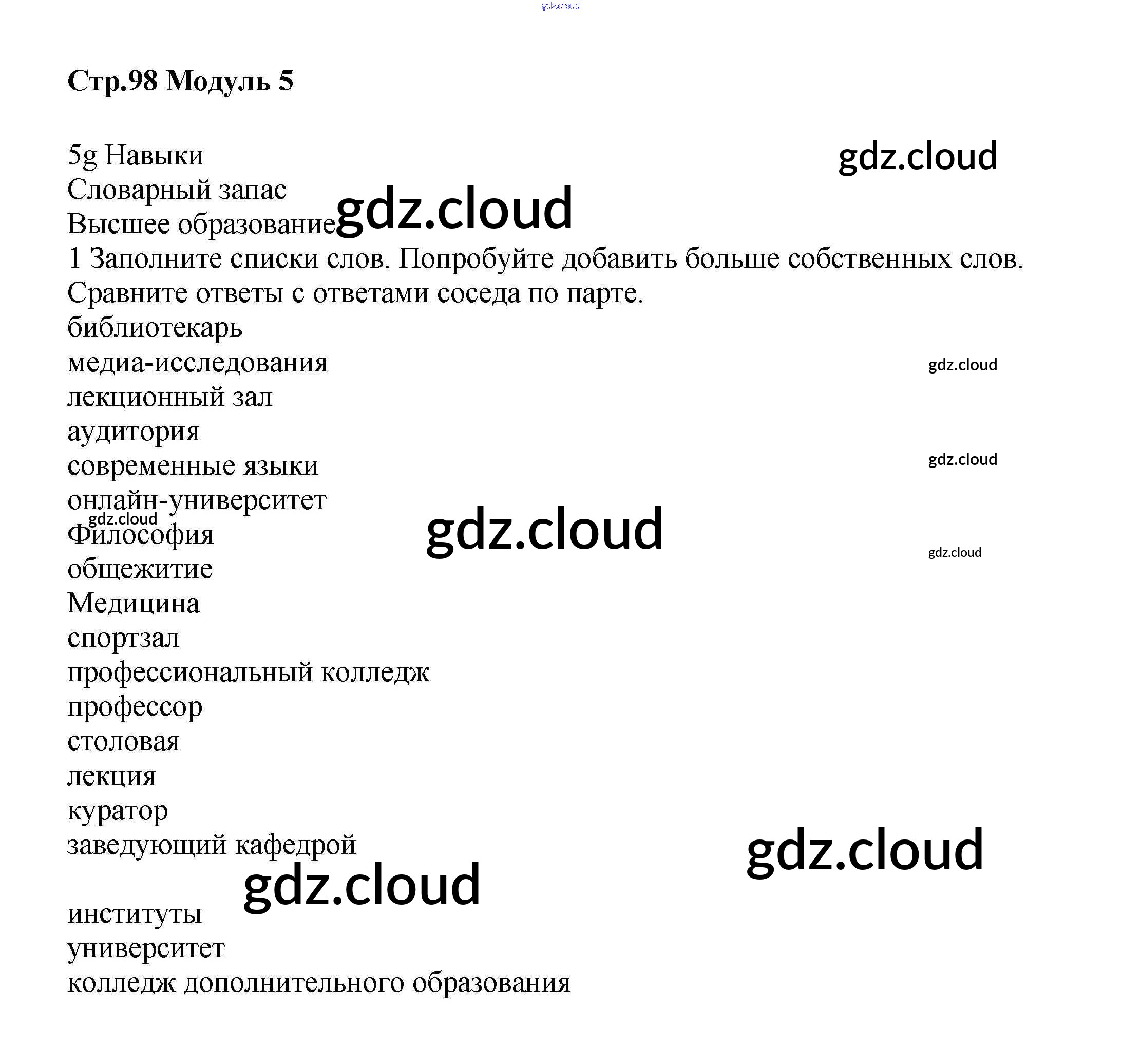 Ответ на задание стр.98 Учебник Английский язык  за 8 (восьмой) класс Баранова, Дули, Эванс, Копылова, Мильруд Starlight Углубленный уровень 2016