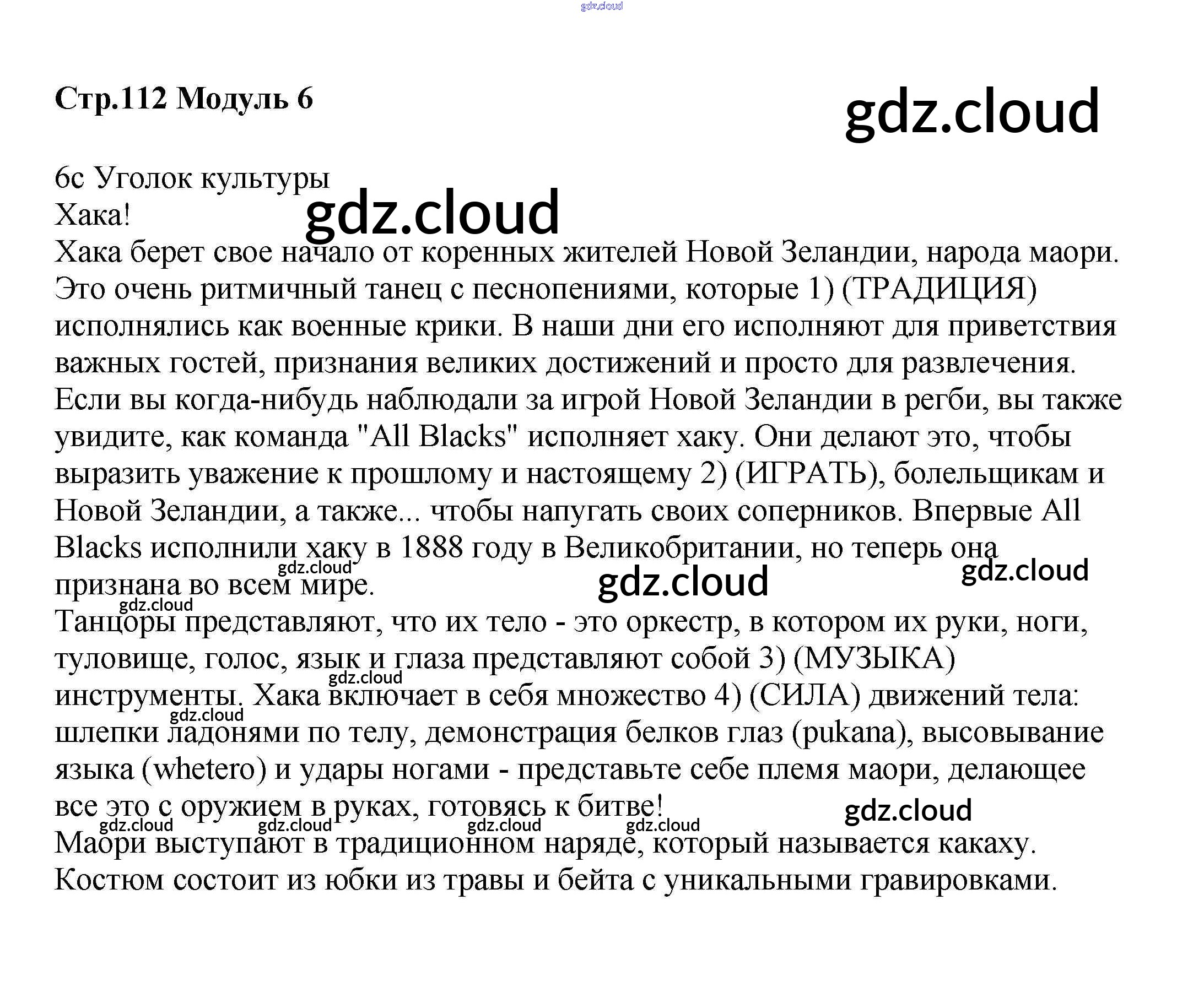 Ответ на задание стр.112 Учебник Английский язык  за 8 (восьмой) класс Баранова, Дули, Эванс, Копылова, Мильруд Starlight Углубленный уровень 2016