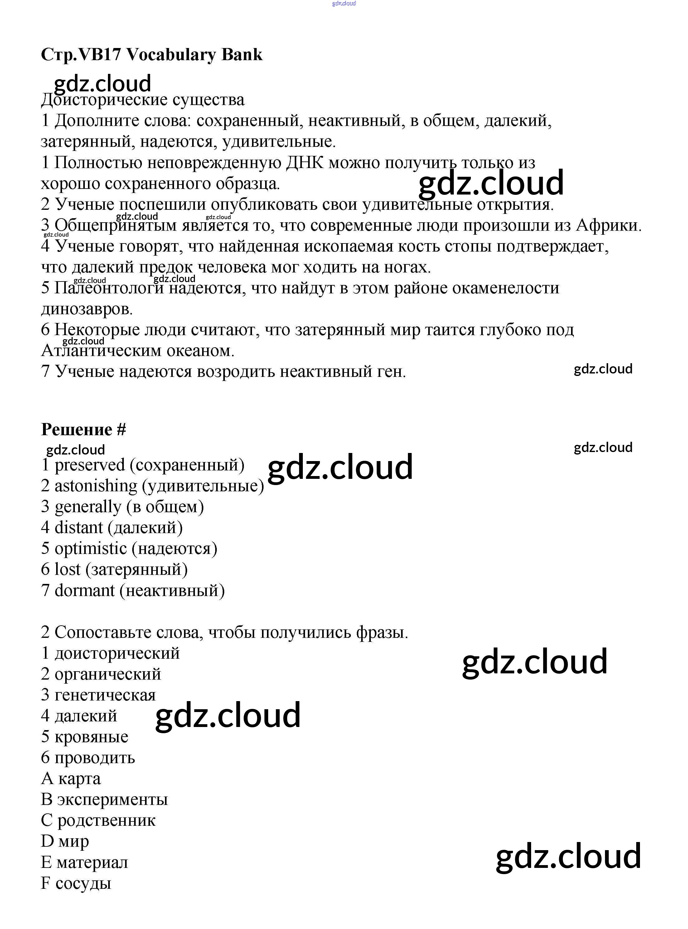 Ответ на задание VB17 Учебник Английский язык  за 8 (восьмой) класс Баранова, Дули, Эванс, Копылова, Мильруд Starlight Углубленный уровень 2016