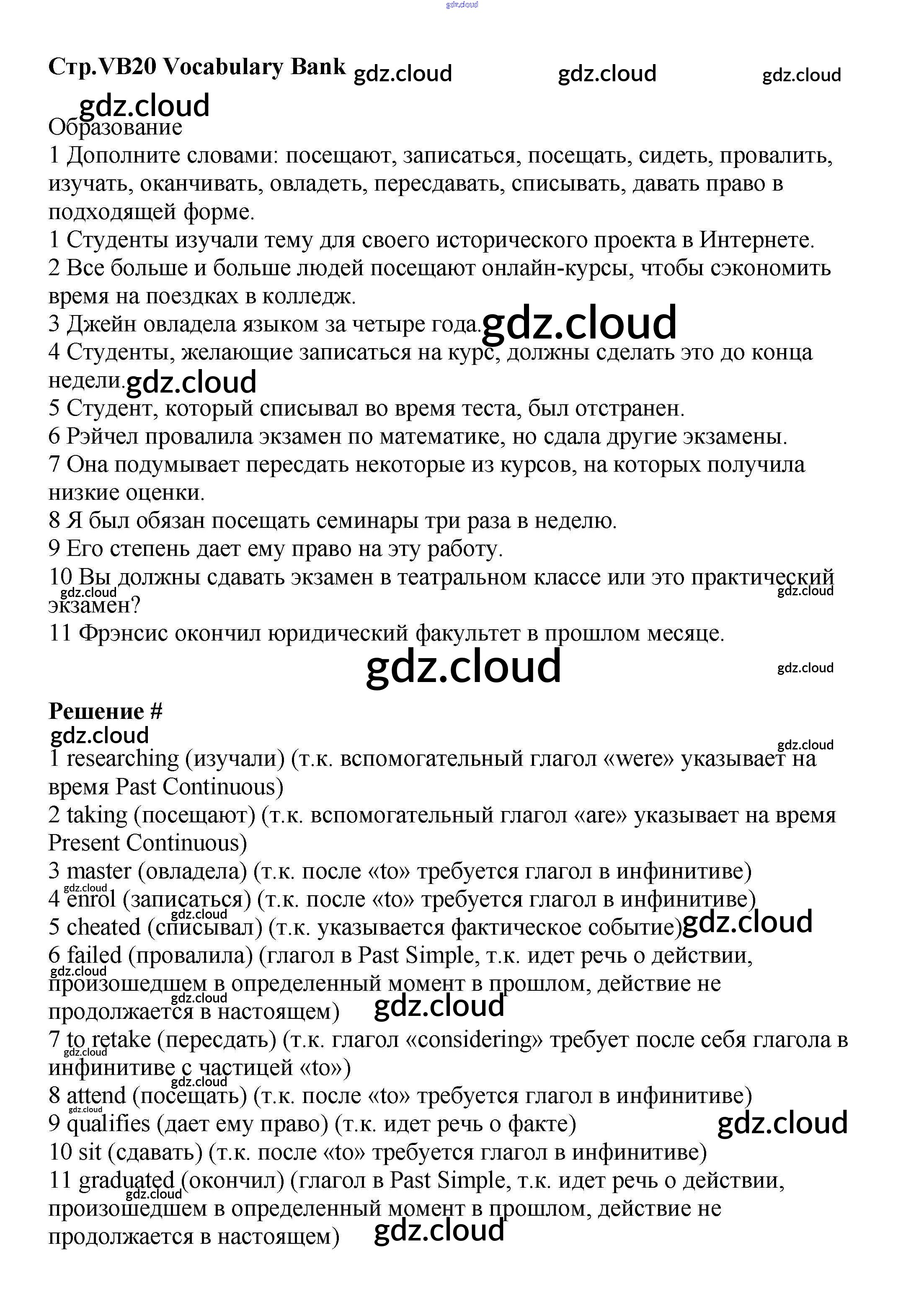 Ответ на задание VB20 Учебник Английский язык  за 8 (восьмой) класс Баранова, Дули, Эванс, Копылова, Мильруд Starlight Углубленный уровень 2016