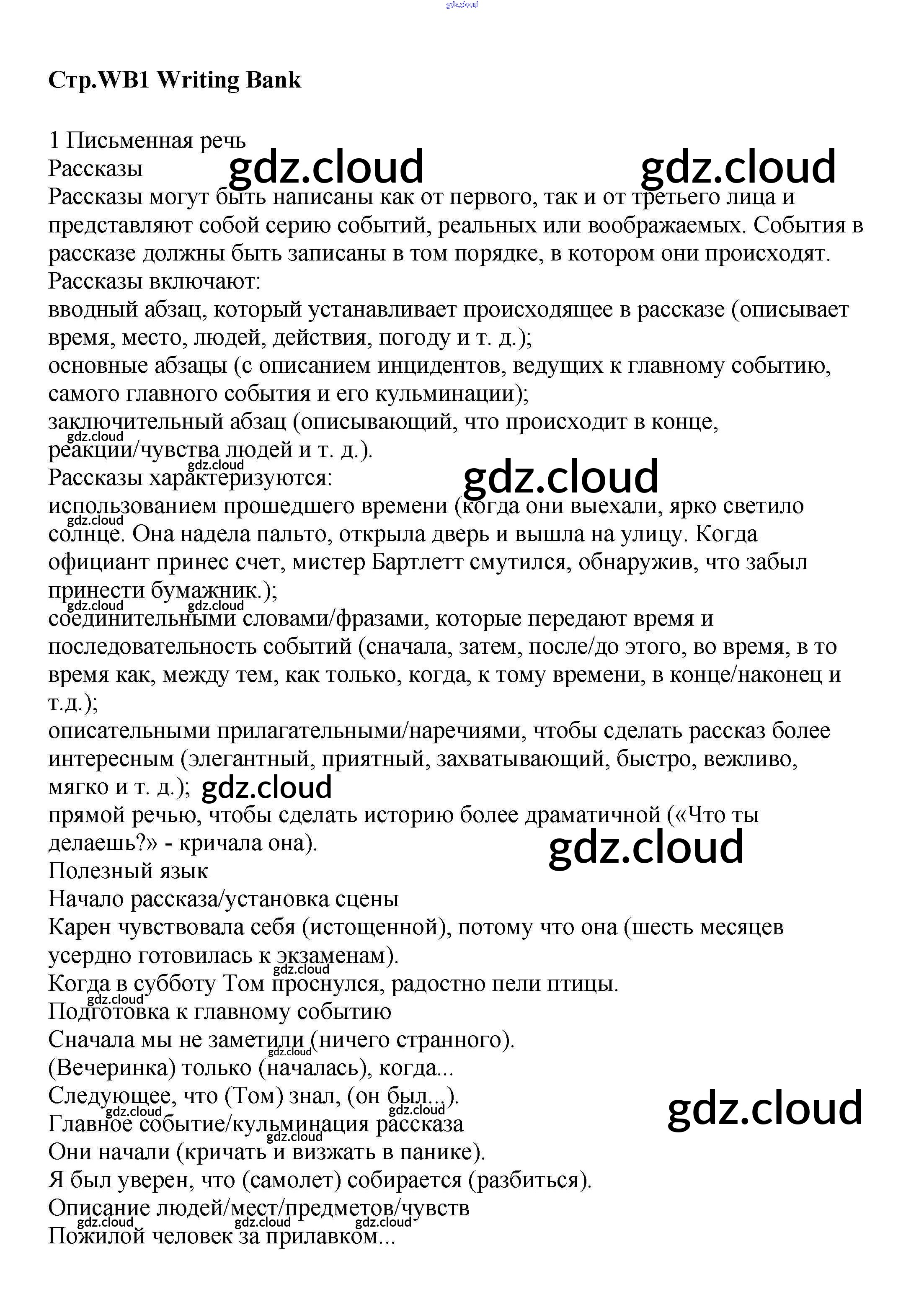 Ответы к Writing Bank  по Английскому языку 8 класс Учебник Баранова Starlight Углубленный уровень  Просвещение
