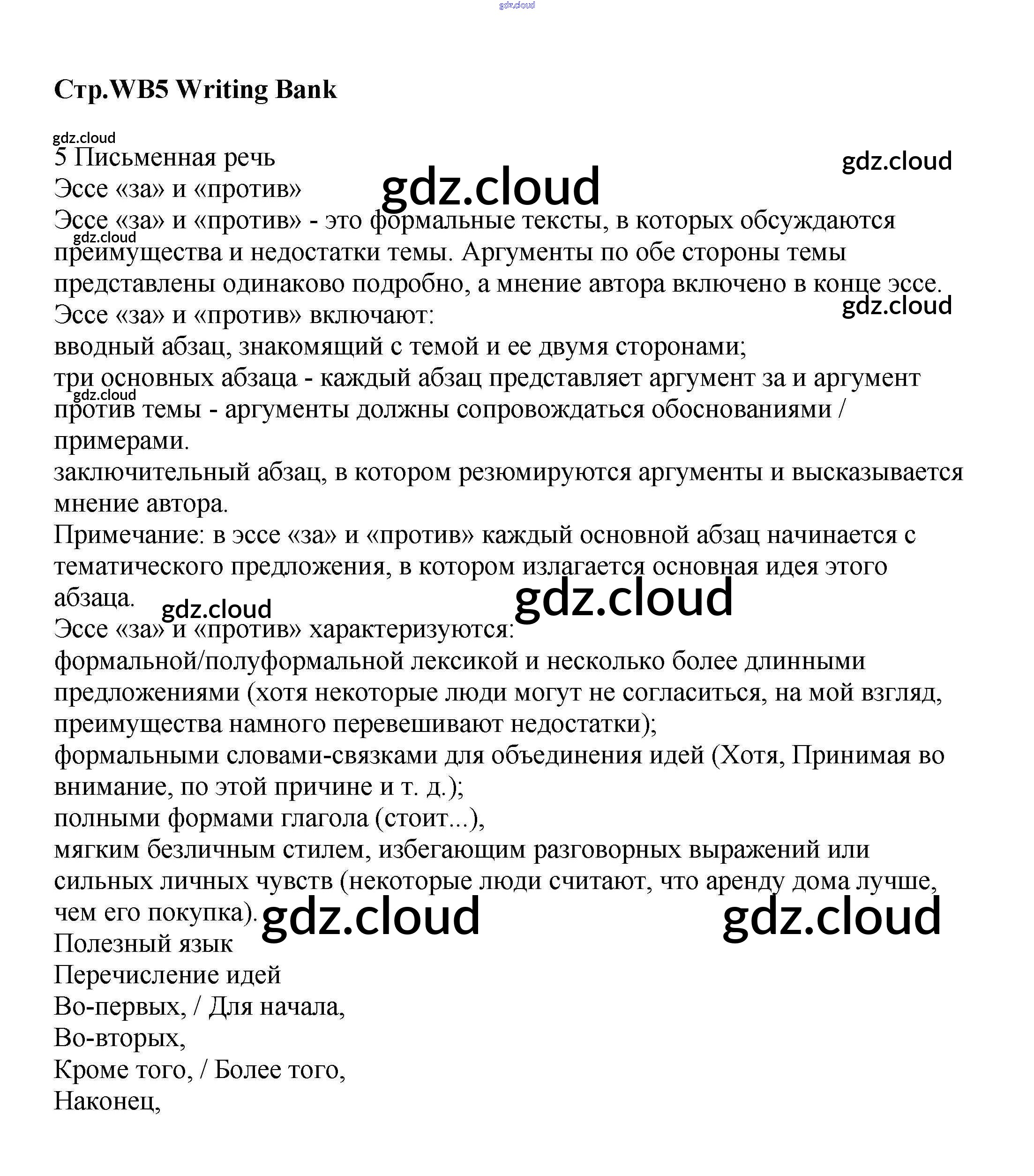 Ответы к Writing Bank  по Английскому языку 8 класс Учебник Баранова Starlight Углубленный уровень  Просвещение