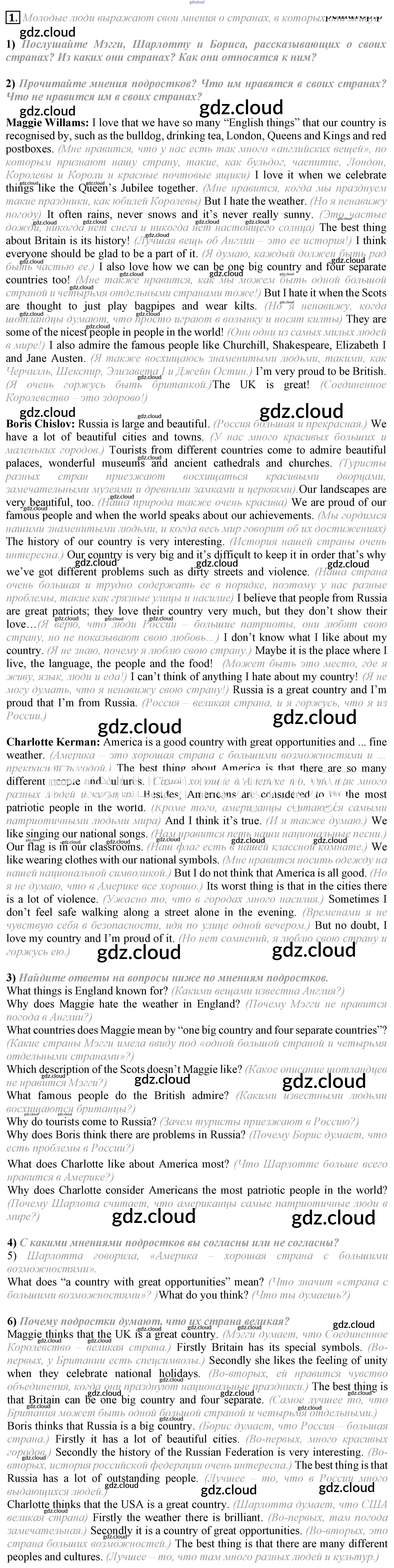 lesson 6 Ответы к Unit 1. My country at a glance по Английскому языку 8 класс Учебник Кузовлев    Просвещение
