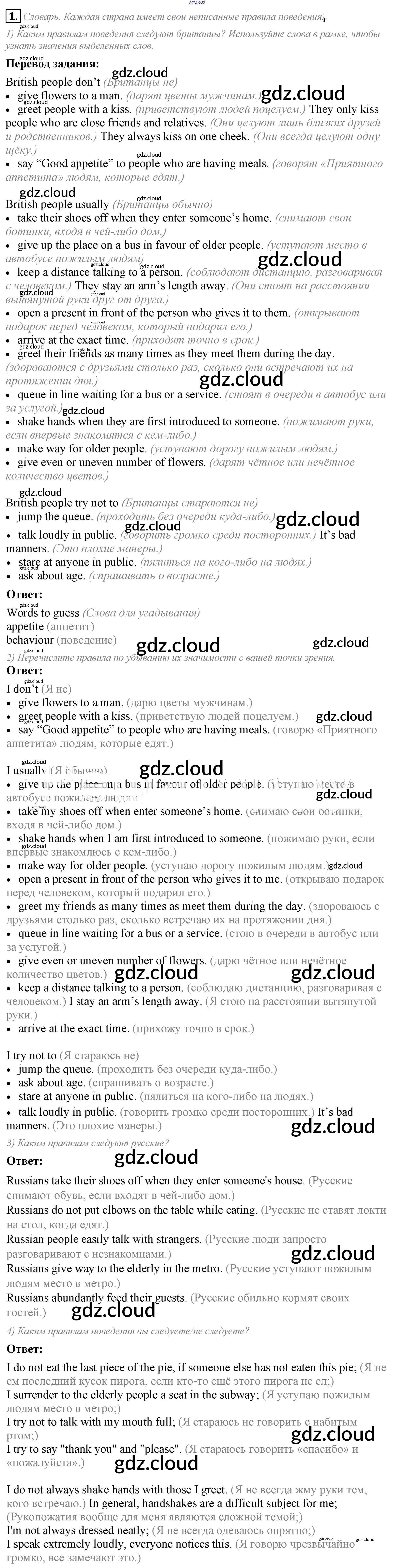 Ответ на задание 1 Учебник Английский язык  за 8 (восьмой) класс Кузовлев, Лапа, Перегудова, Костина, Кузнецова, Дуванова, Кобец   2015