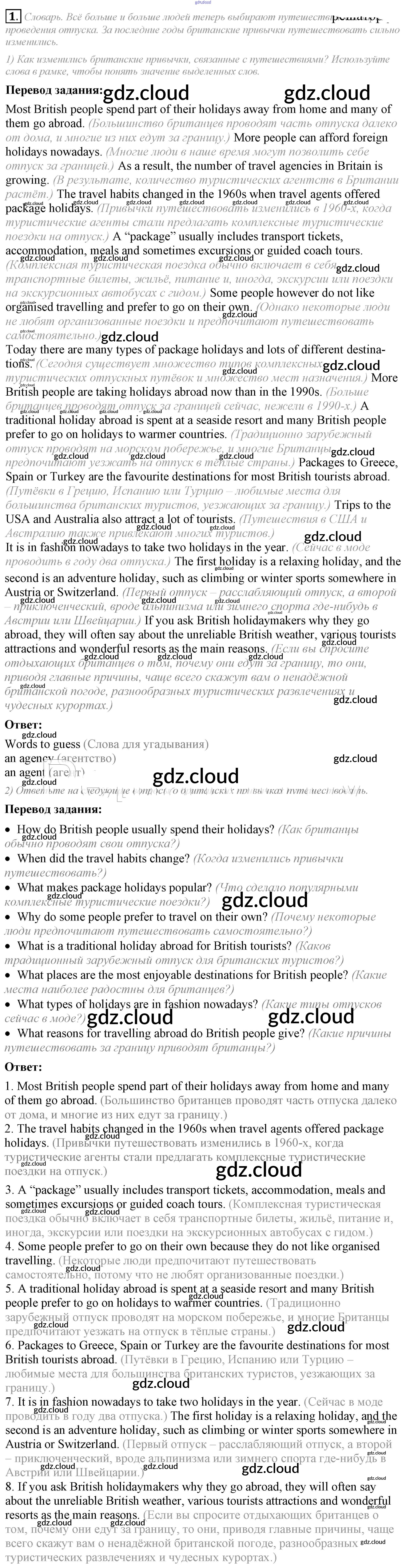 Ответ на задание 1 Учебник Английский язык  за 8 (восьмой) класс Кузовлев, Лапа, Перегудова, Костина, Кузнецова, Дуванова, Кобец   2015