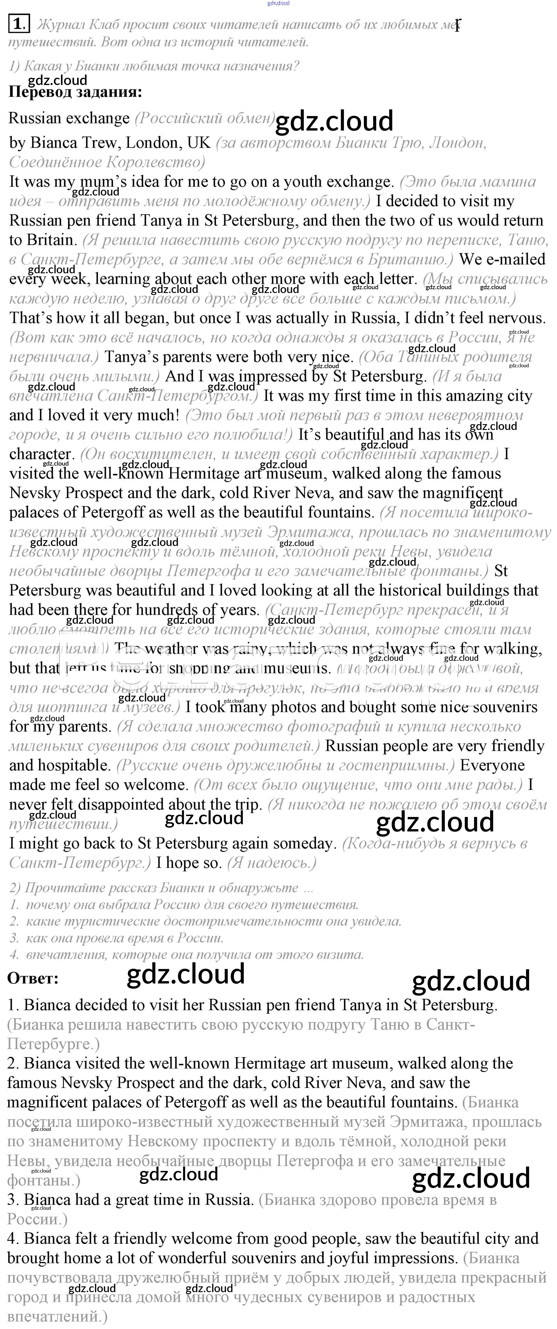 Ответ на задание 1 Учебник Английский язык  за 8 (восьмой) класс Кузовлев, Лапа, Перегудова, Костина, Кузнецова, Дуванова, Кобец   2015