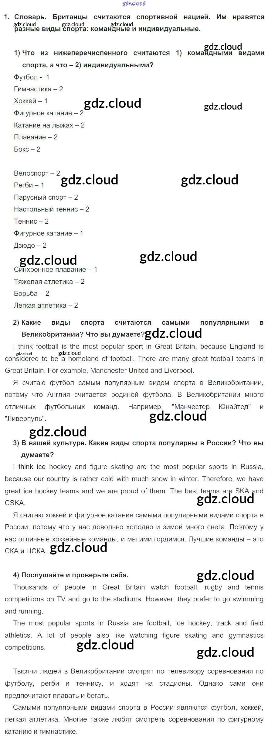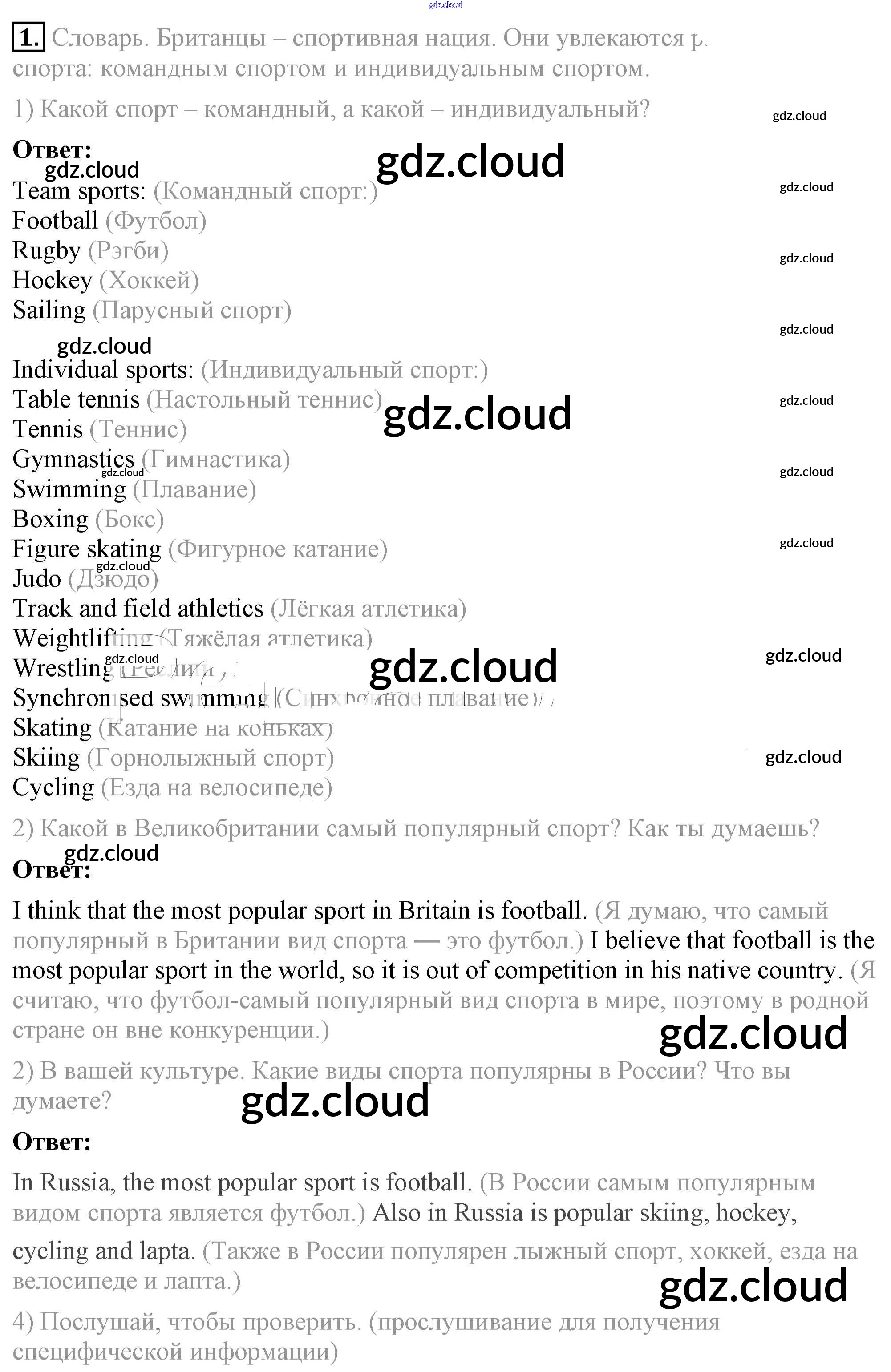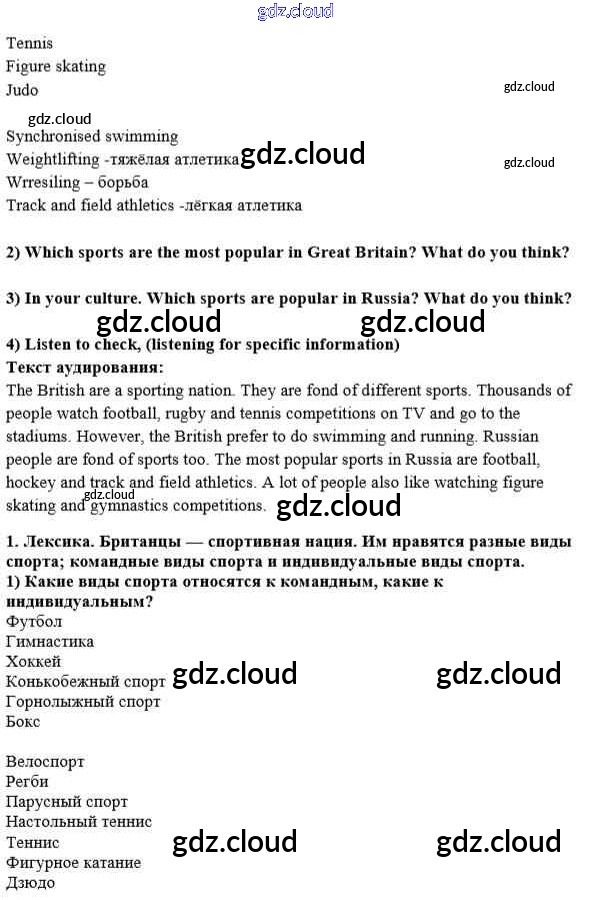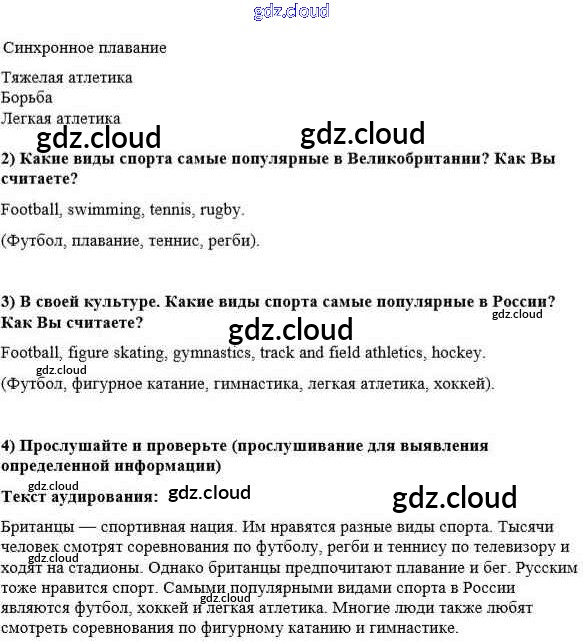 lesson 1 Ответы к Unit 4. Are you fond of sport? по Английскому языку 8 класс Учебник Кузовлев    Просвещение