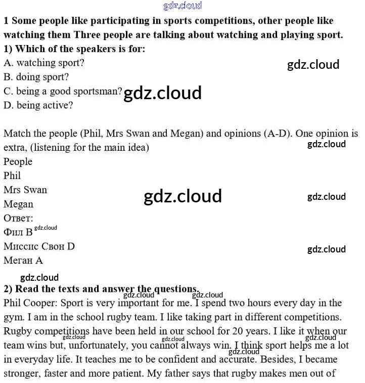 lesson 6 Ответы к Unit 4. Are you fond of sport? по Английскому языку 8 класс Учебник Кузовлев    Просвещение