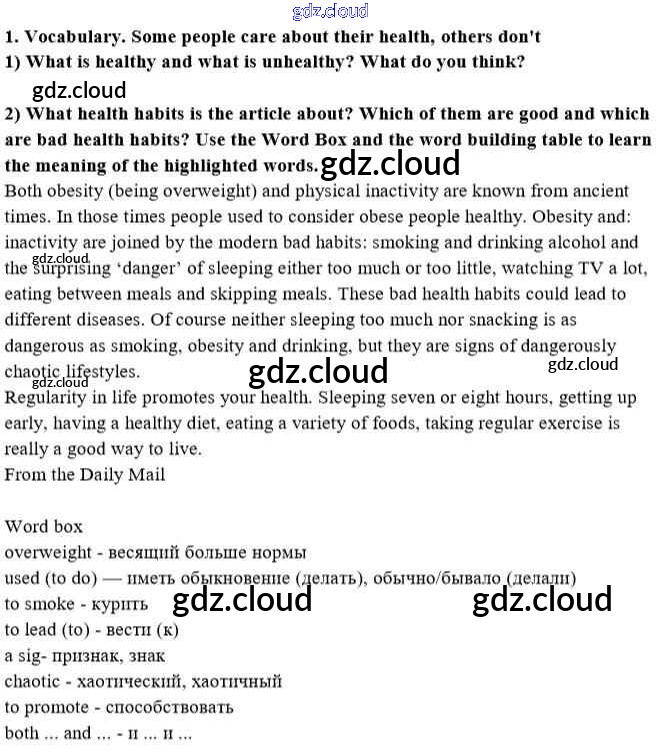 Ответ на задание 1 Учебник Английский язык  за 8 (восьмой) класс Кузовлев, Лапа, Перегудова, Костина, Кузнецова, Дуванова, Кобец   2015