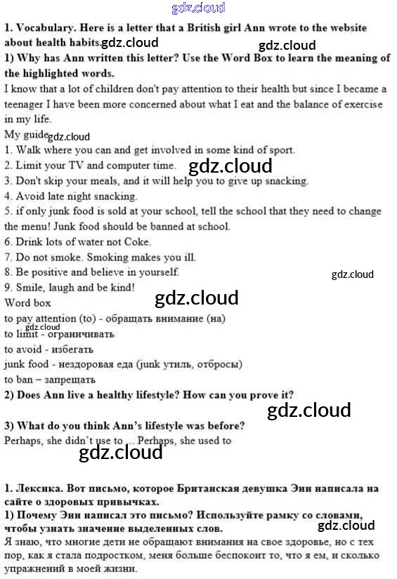 lesson 2 Ответы к Unit 5. A healthy living guide по Английскому языку 8 класс Учебник Кузовлев    Просвещение