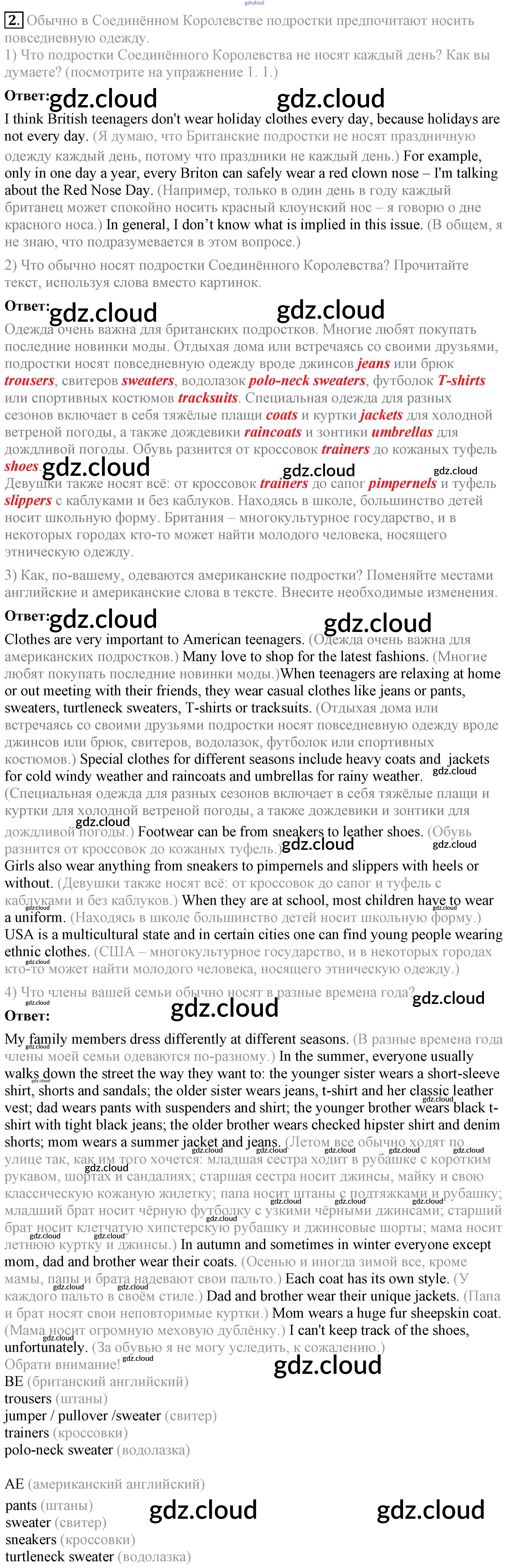 Ответ на задание 2 Учебник Английский язык  за 8 (восьмой) класс Кузовлев, Лапа, Перегудова, Костина, Кузнецова, Дуванова, Кобец   2015