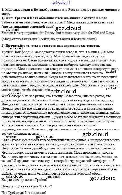 Ответ на задание 1 Учебник Английский язык  за 8 (восьмой) класс Кузовлев, Лапа, Перегудова, Костина, Кузнецова, Дуванова, Кобец   2015