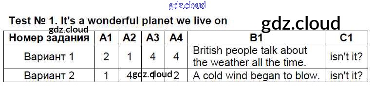 Ответ на задание Test №1. It's a wonderful planet we live on Контрольно-измерительные материалы (КИМ) Английский язык  за 8 (восьмой) класс Лысакова   2018