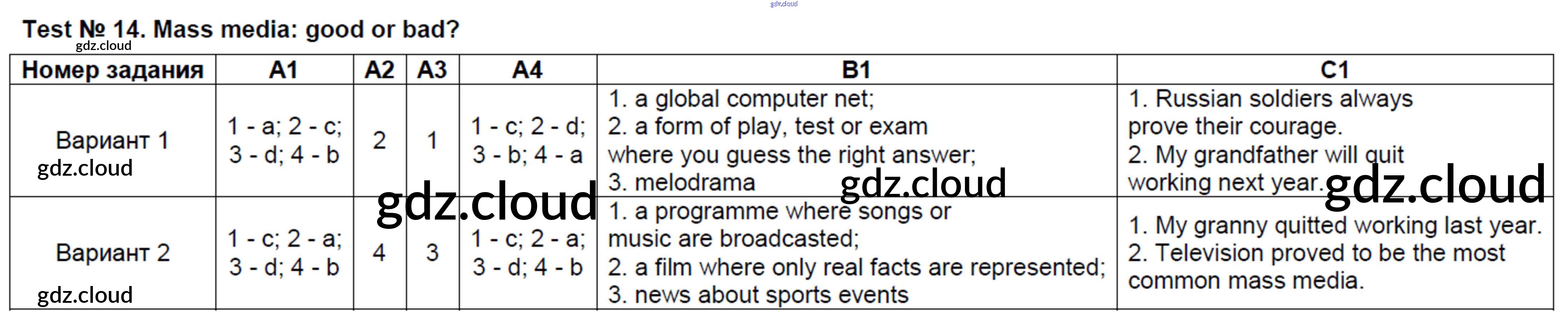 Ответ на задание Test №14. Mass media - good or bad Контрольно-измерительные материалы (КИМ) Английский язык  за 8 (восьмой) класс Лысакова   2018
