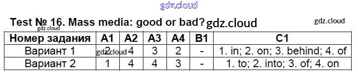 Ответ на задание Test №16. Mass media - good or bad Контрольно-измерительные материалы (КИМ) Английский язык  за 8 (восьмой) класс Лысакова   2018