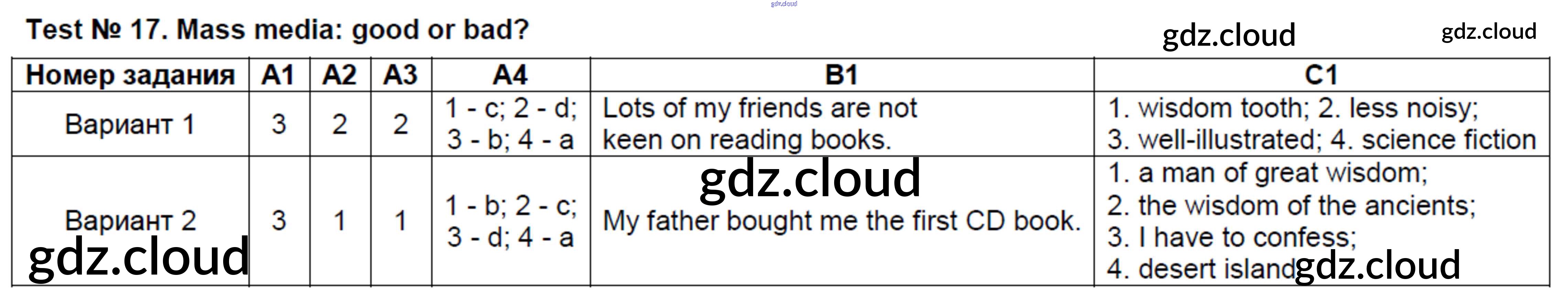 Ответ на задание Test №17. Mass media - good or bad Контрольно-измерительные материалы (КИМ) Английский язык  за 8 (восьмой) класс Лысакова   2018