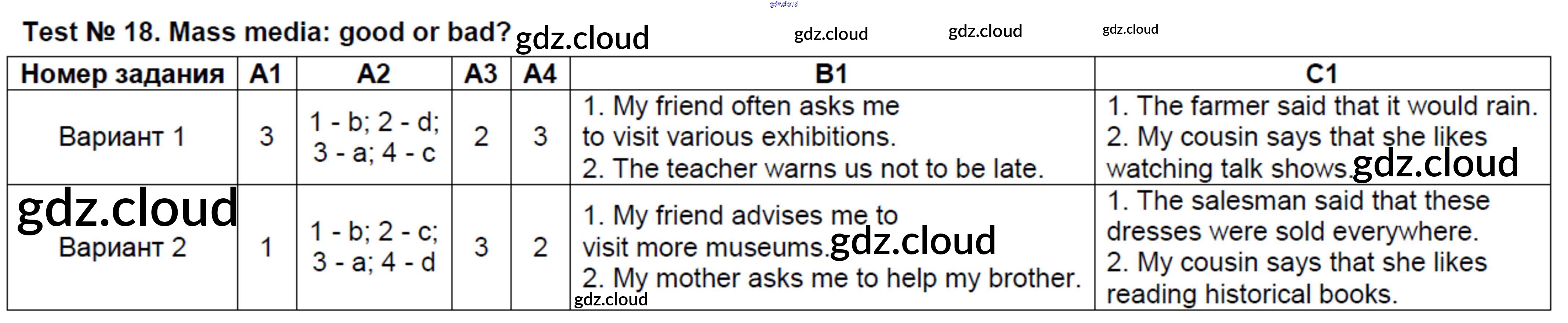 Ответ на задание Test №18. Mass media - good or bad Контрольно-измерительные материалы (КИМ) Английский язык  за 8 (восьмой) класс Лысакова   2018