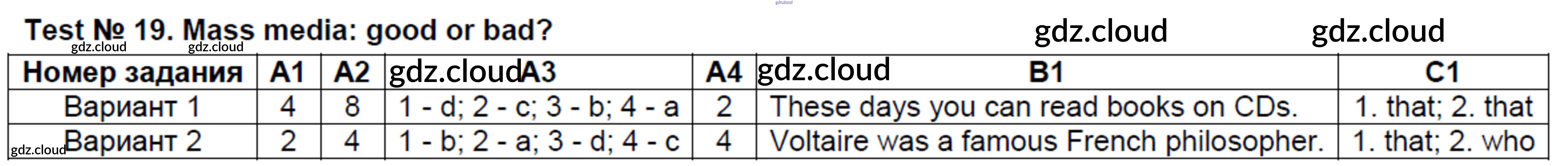 Ответ на задание Test №19. Mass media - good or bad Контрольно-измерительные материалы (КИМ) Английский язык  за 8 (восьмой) класс Лысакова   2018