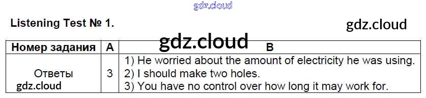 Ответ на задание listening test №1 Контрольно-измерительные материалы (КИМ) Английский язык  за 8 (восьмой) класс Лысакова   2018