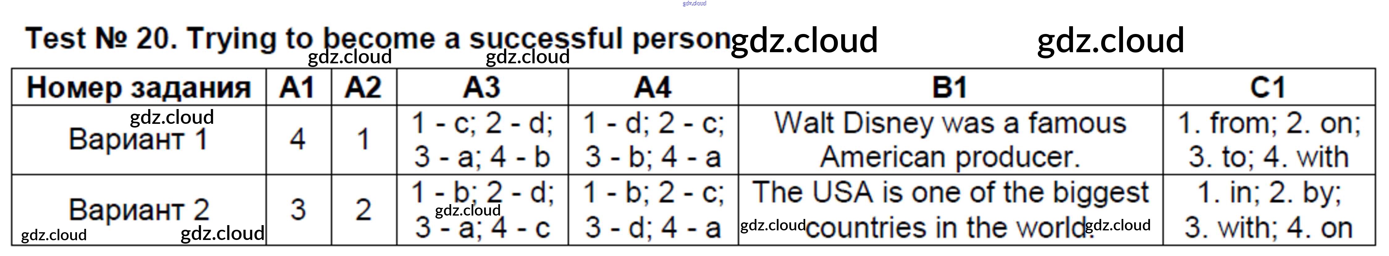 Ответ на задание Test №20. Trying to become a successful person Контрольно-измерительные материалы (КИМ) Английский язык  за 8 (восьмой) класс Лысакова   2018